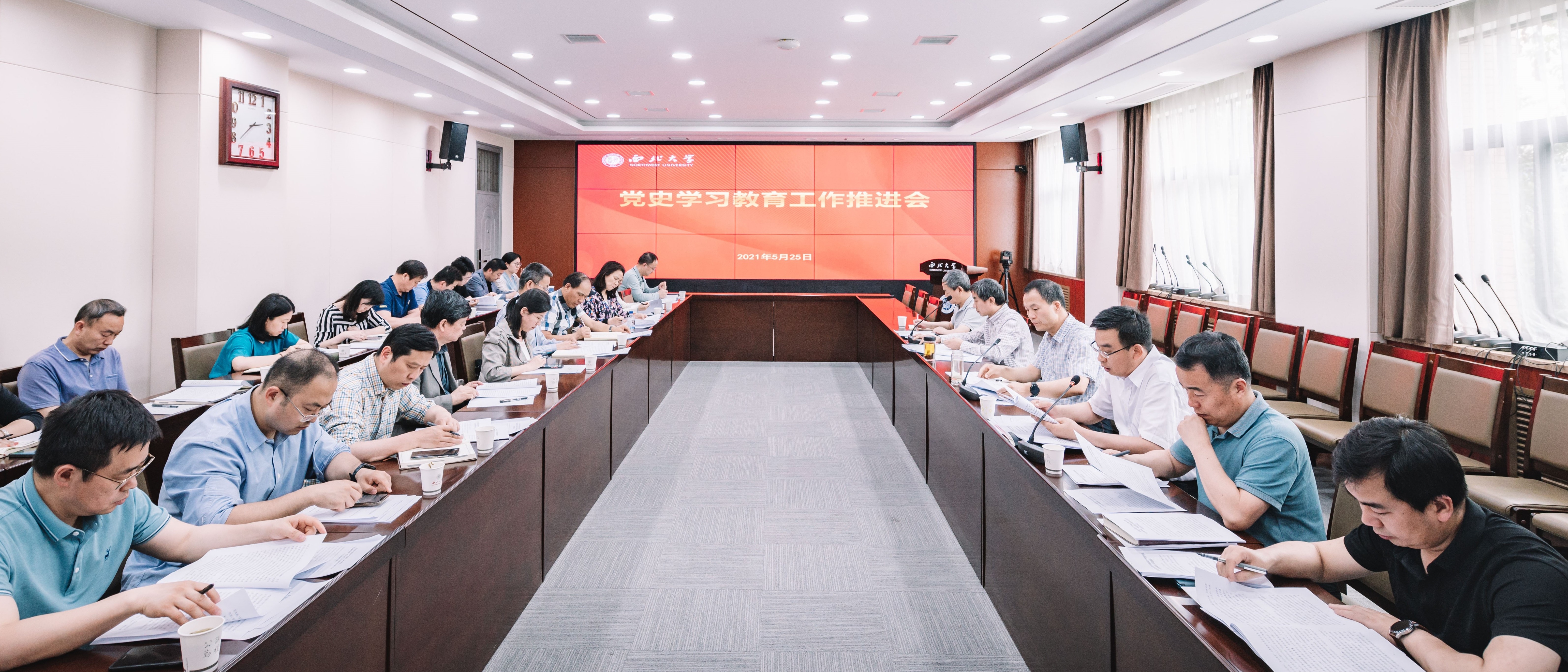 5月25日下午,学校在长安校区召开党史学习教育工作推进会。党史学习教育领导小组办公室成员单位和有关单位负责人参加了会议。会议由校党委副书记、党史学习教育领导小组副组长、办公室主任吕建荣主持。会上,校党委常委、宣传部部长、党史学习教育领导小组办公室副主任田明纲传达了中央办公厅《关于庆祝中国共产党成立100周年组织开展“永远跟党走”群众性主题宣传教育活动的通知》,中央党史学习教育领导小组《关于认真学习贯...