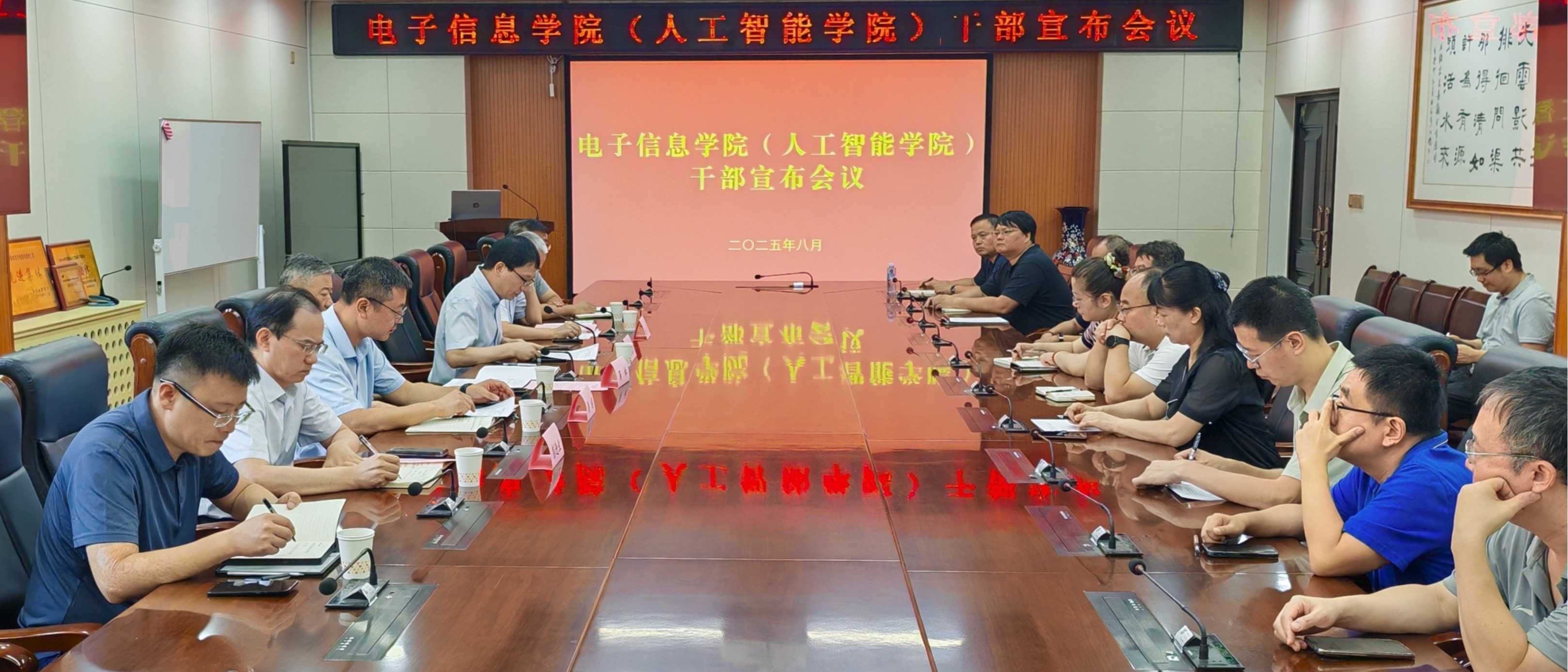 8月18日上午,新组建电子信息学院(人工智能学院)成立暨干部宣布会议在长安校区举行。校党委书记蒋林,党委组织部主要负责同志,电子信息学院(人工智能学院)党政班子成员,各系(部、中心)主任、教工党支部书记、科级以上干部参加会议。会议由校党委副书记、纪委书记、省纪委监委驻校纪检监察组组长肖道远主持。会上,肖道远宣布了电子信息学院(人工智能学院)的机构设置。为面向科技前沿,重塑学科生态,服务国家战略,学...