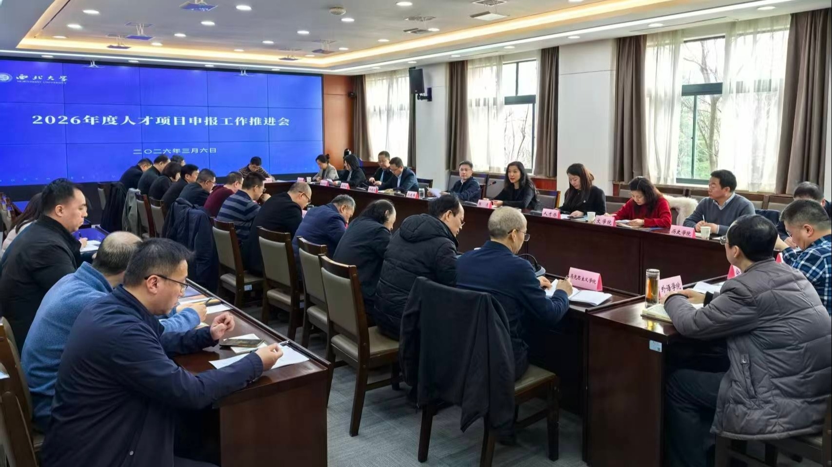 3月6日,学校召开人才项目申报工作推进会,校长孙庆伟出席会议并讲话,人才办、科技处、社科处主要负责人,各教学科研单位主要负责人参加会议。会议由校党委副书记张清主持。会议听取了人才办、科技处关于国家级人才项目申报进展情况汇报及下一步工作安排。各教学科研单位依次汇报了本单位2026年国家级人才项目组织动员、申报工作进展,并就“十五五”人才队伍建设规划进行了交流。孙庆伟指出,要充分把握时代脉搏和学校发展目...