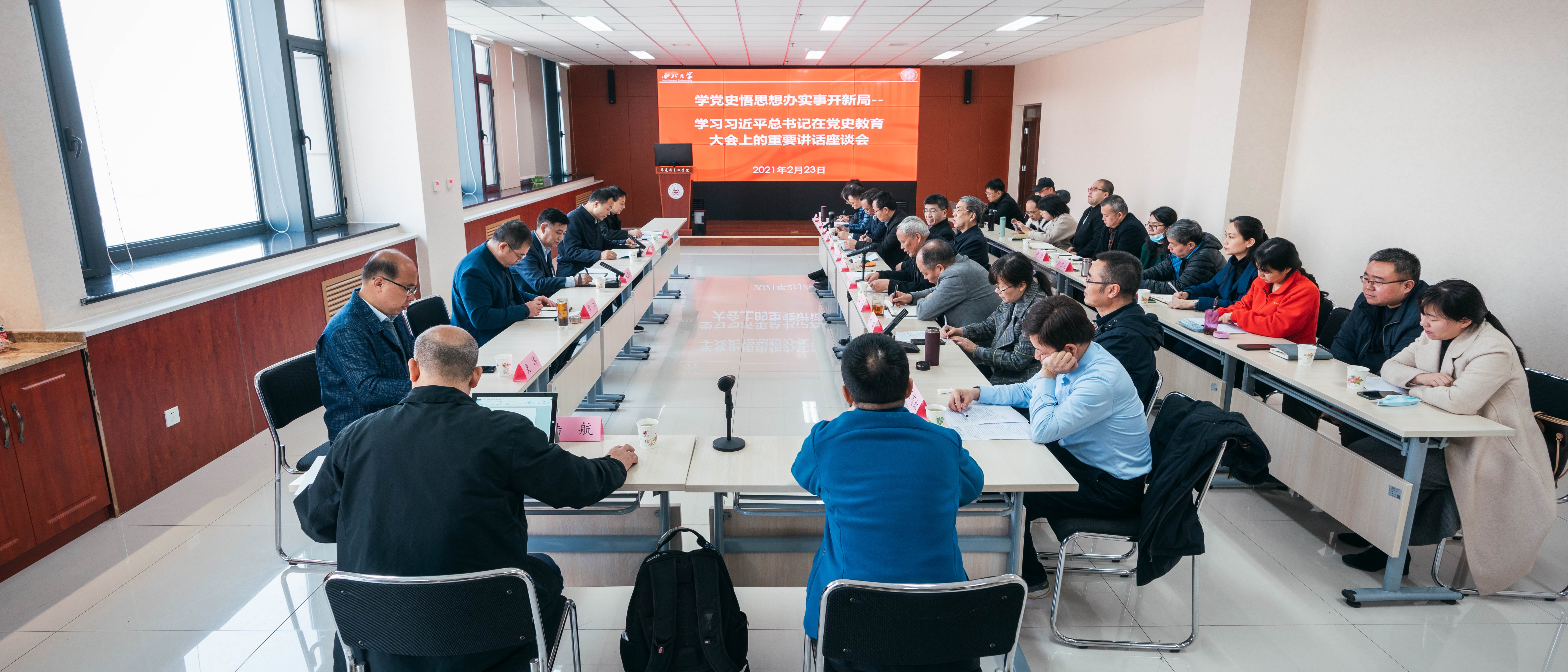 2月23日上午,学校在长安校区召开“学党史 悟思想 办实事 开新局——学习习近平总书记在党史学习教育动员大会上的重要讲话”座谈会。校党委书记王亚杰,校党委常委、副校长常江,宣传部、社科处负责人及马克思主义学院党政班子成员、思政课教师参加座谈,会议由校党委副书记、马克思主义学院院长吕建荣主持。会议首先集体观看了习近平总书记在党史学习教育动员大会上重要讲话的新闻视频。在专题研讨环节,延安精神与党的建设研...