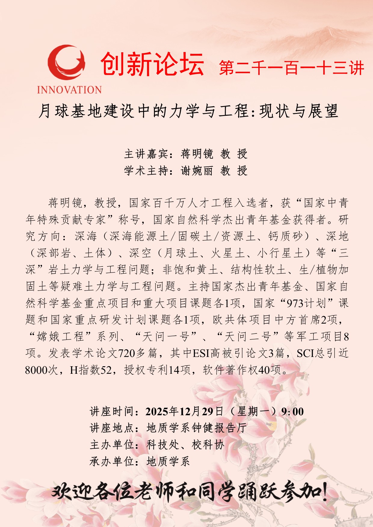 乐鱼web版登录入口创新论坛第二千一百一十三讲:月球基地建设中的力学与工程:现状与展望