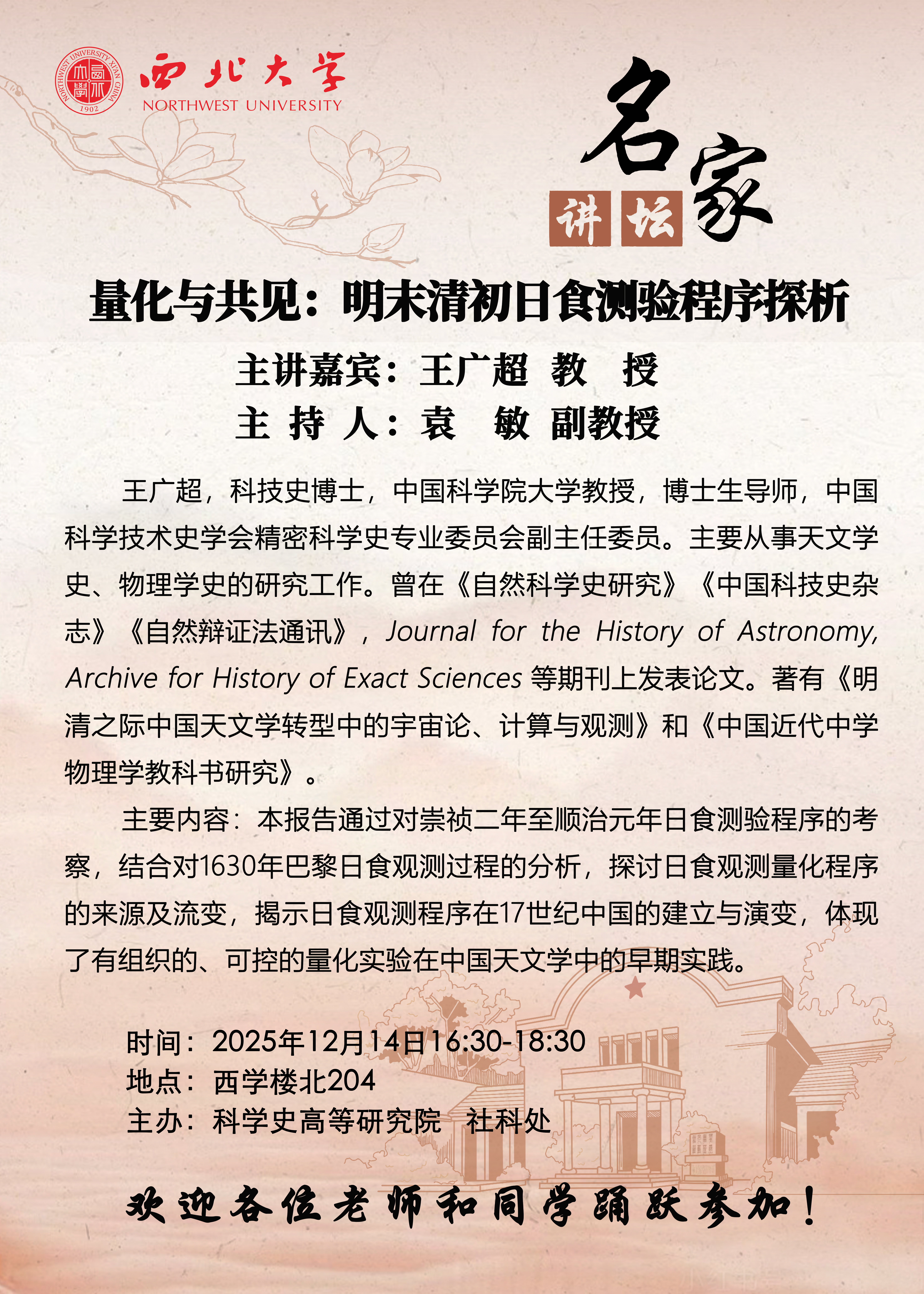 名家讲坛:量化与共见:明末清初日食测验程序探析