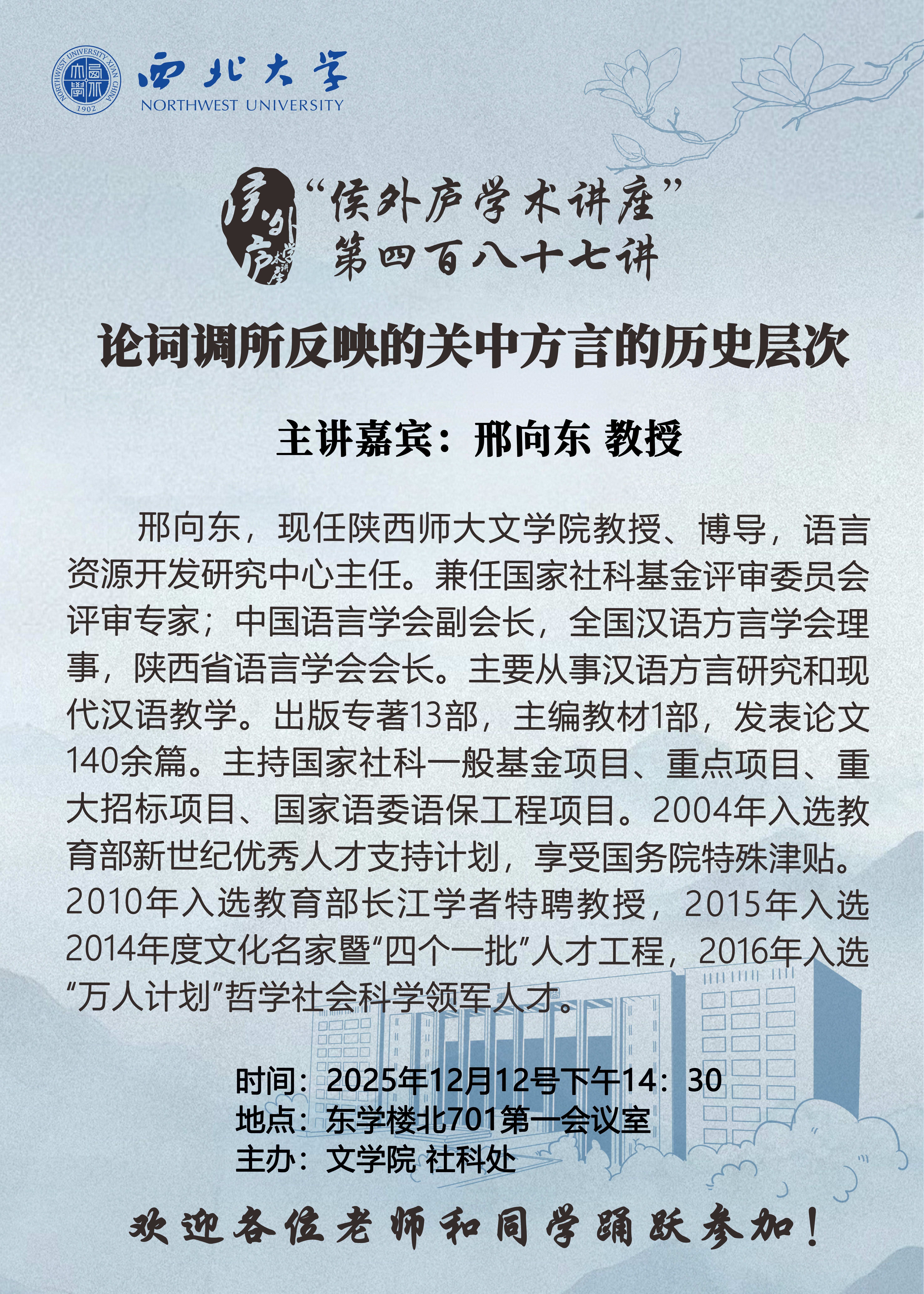 “侯外庐学术讲座” 第四百八十七讲:论词调所反映的关中方言的历史层次