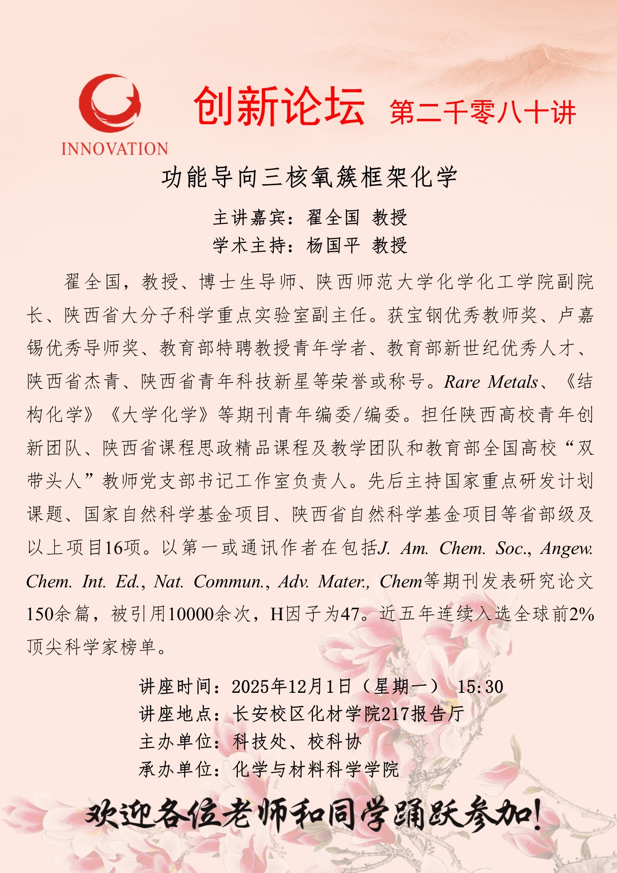 乐鱼web版登录入口创新论坛第二千零八十讲:功能导向三核氧簇框架化学