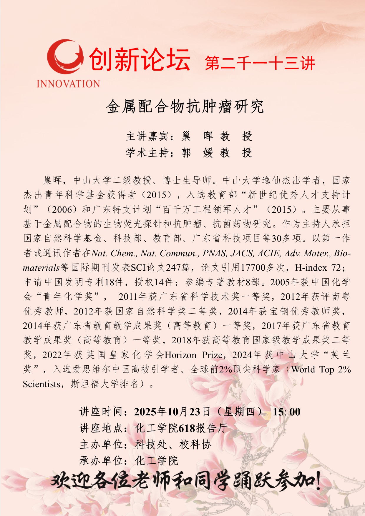 乐鱼web版登录入口创新论坛第二千一十三讲:金属配合物抗肿瘤研究