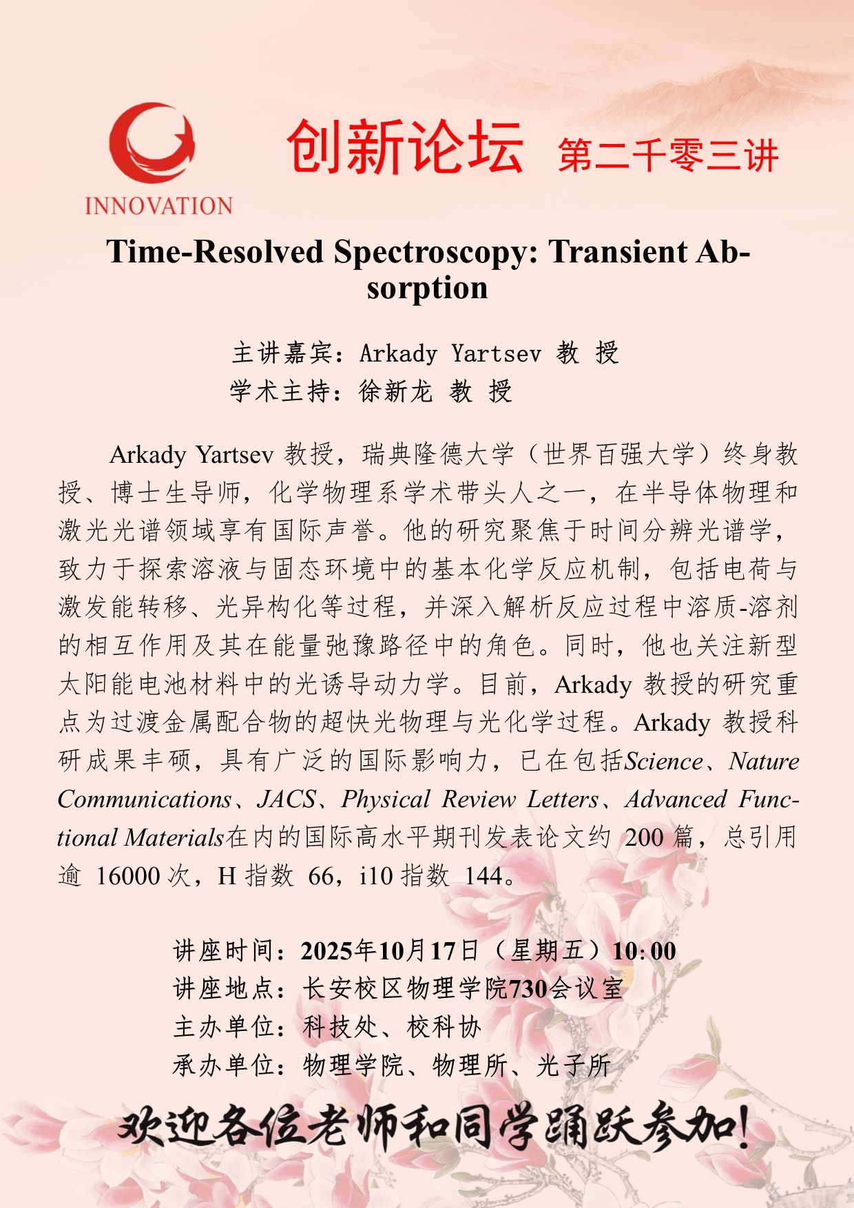 作者:Arkady Yartsev 教授发布时间:2025-10-15阅读: