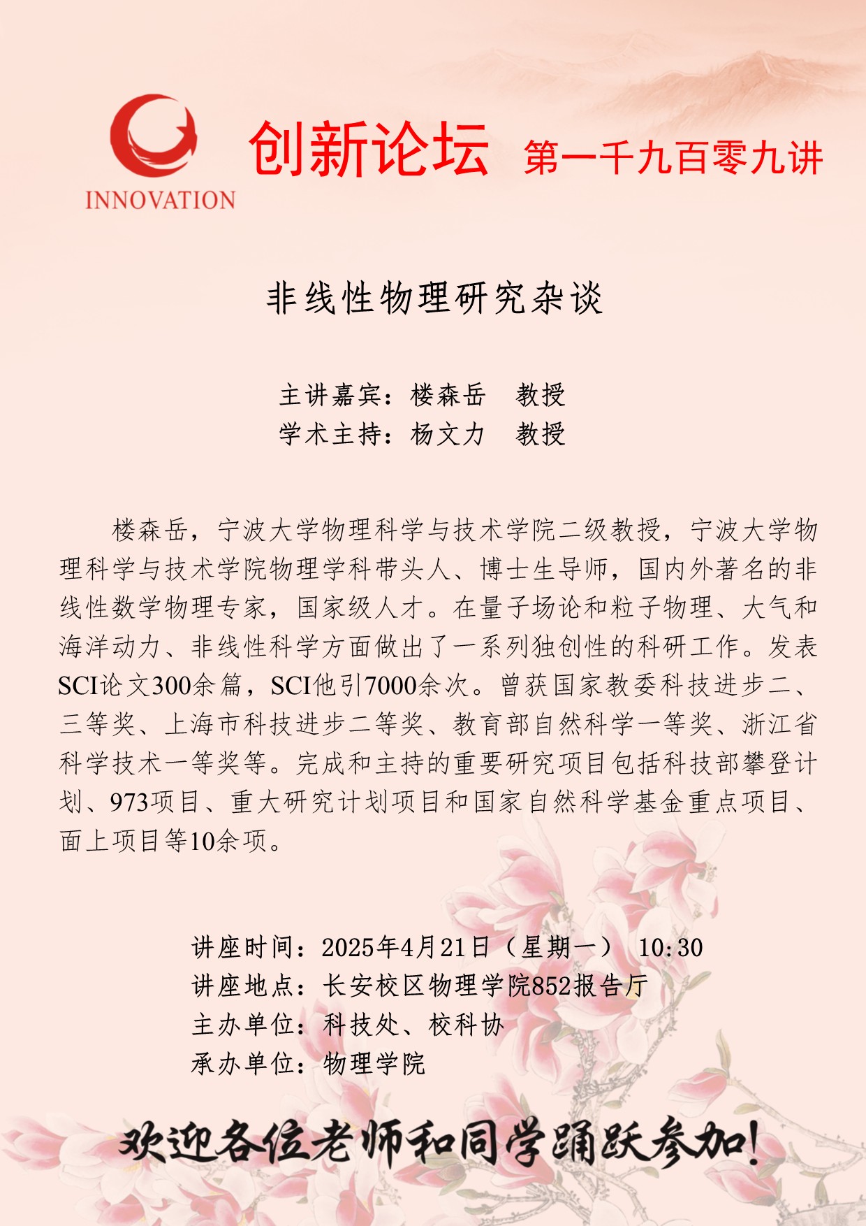 乐鱼web版登录入口创新论坛第一千九百零九讲:非线性物理研究杂谈