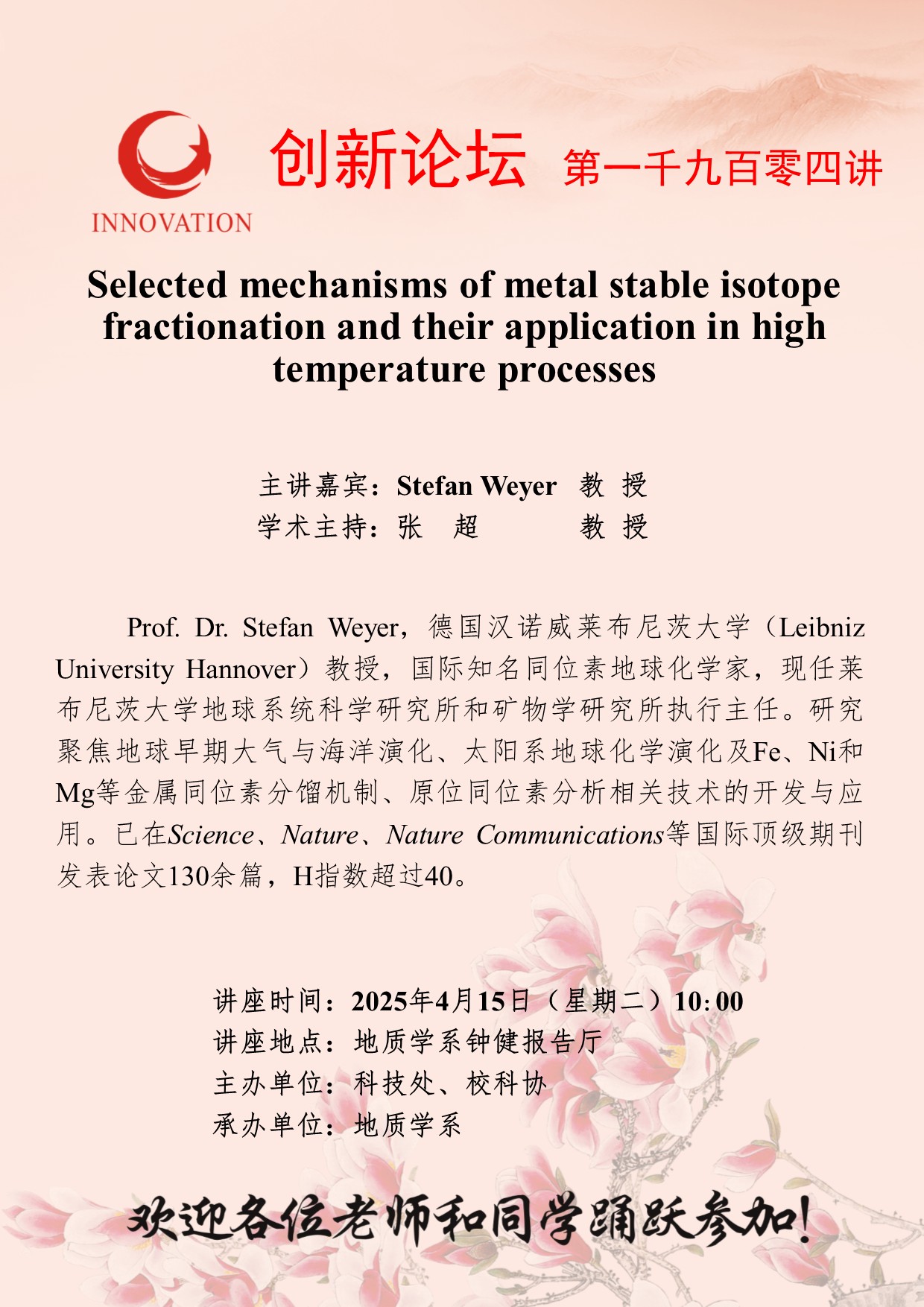 乐鱼web版登录入口创新论坛第一千九百零四讲:Selected mechanisms of metal stable isotope fractionation and their application in high temperature processes