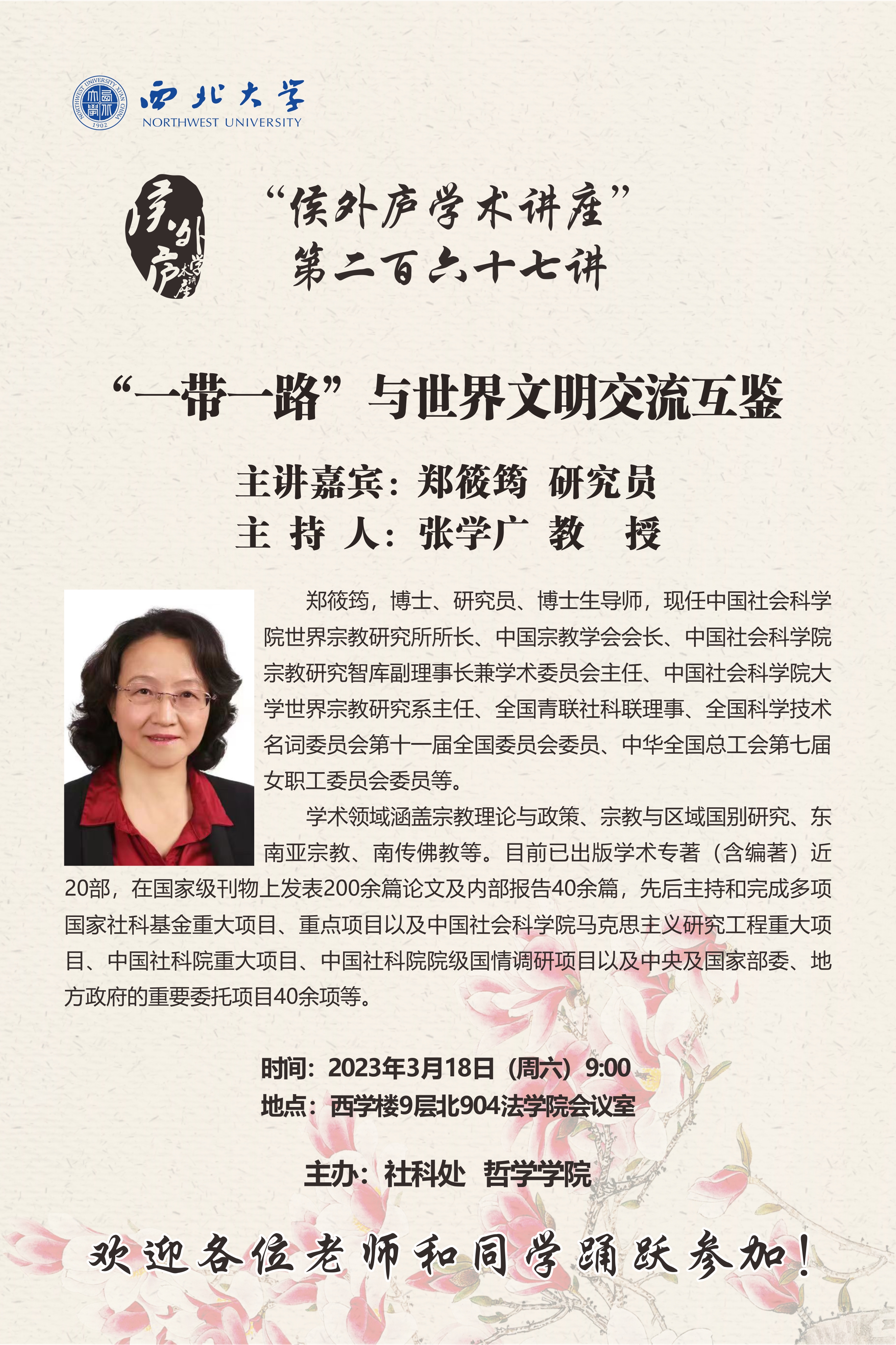 侯外庐学术讲座第二百六十七讲:“一带一路”与世界文明交流互鉴
