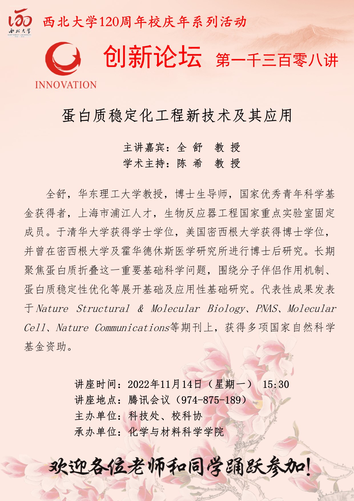 下一篇:乐鱼web版登录入口创新论坛第一千三百零七讲暨120周年校庆年系列活动: 生物氧化酶的分子进化及其在手性药合成中的应用
