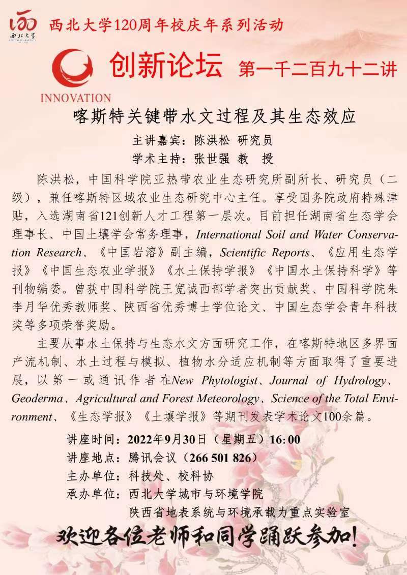 作者:陈洪松 教授发布时间:2022-09-29阅读: