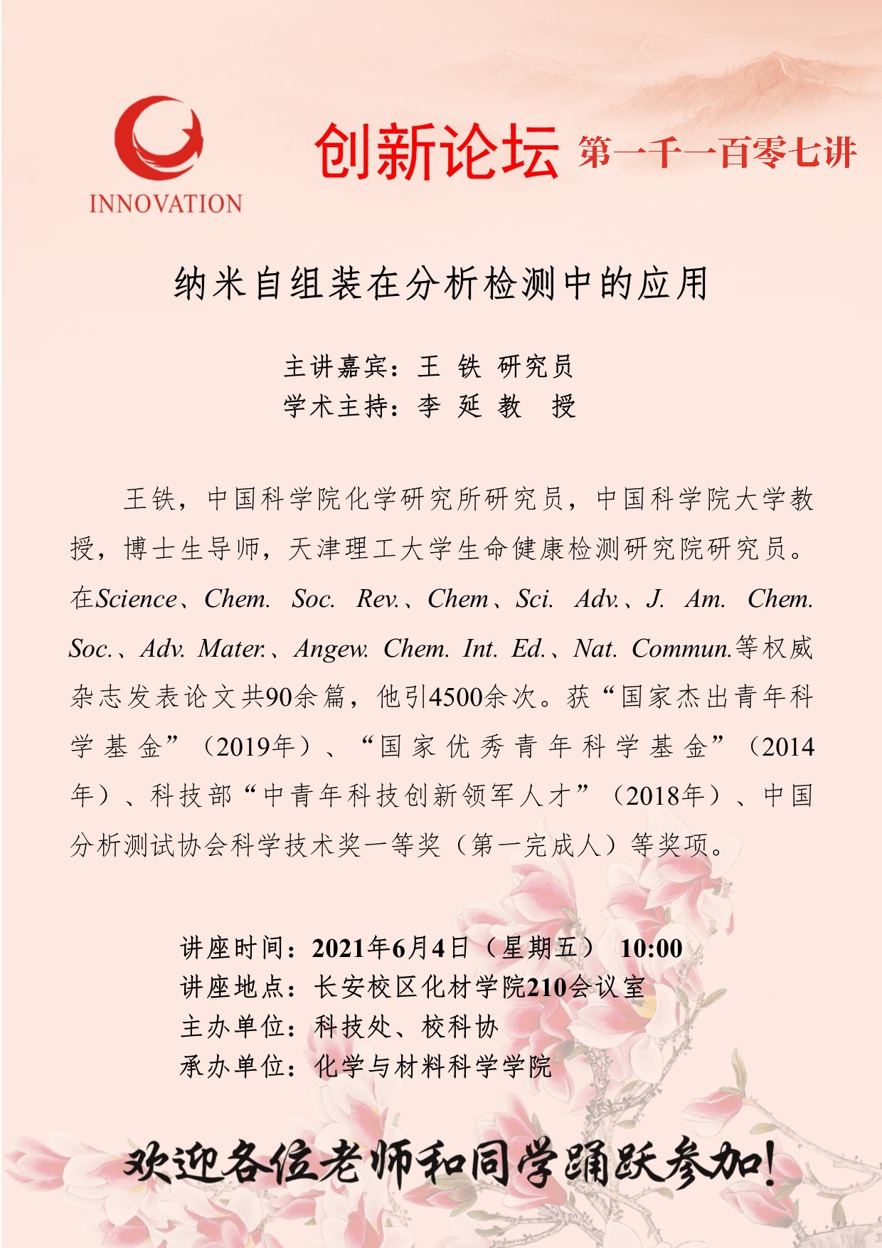 乐鱼web版登录入口创新论坛第一千一百零七讲:纳米自组装在分析检测中的应用