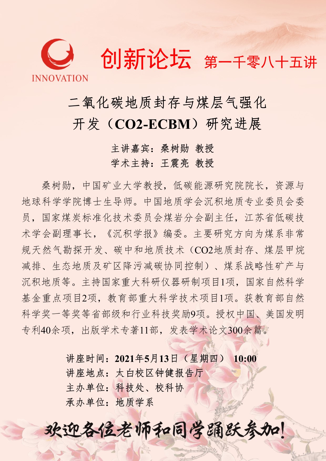 乐鱼web版登录入口创新论坛第一千零八十五讲:二氧化碳地质封存与煤层气强化开发(CO2-ECBM)研究进展