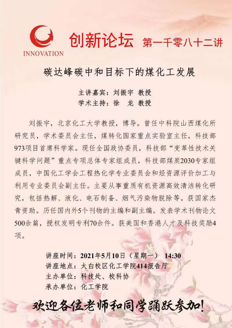 乐鱼web版登录入口创新论坛第一千零八十二讲:碳达峰碳中和目标下的煤化工发展