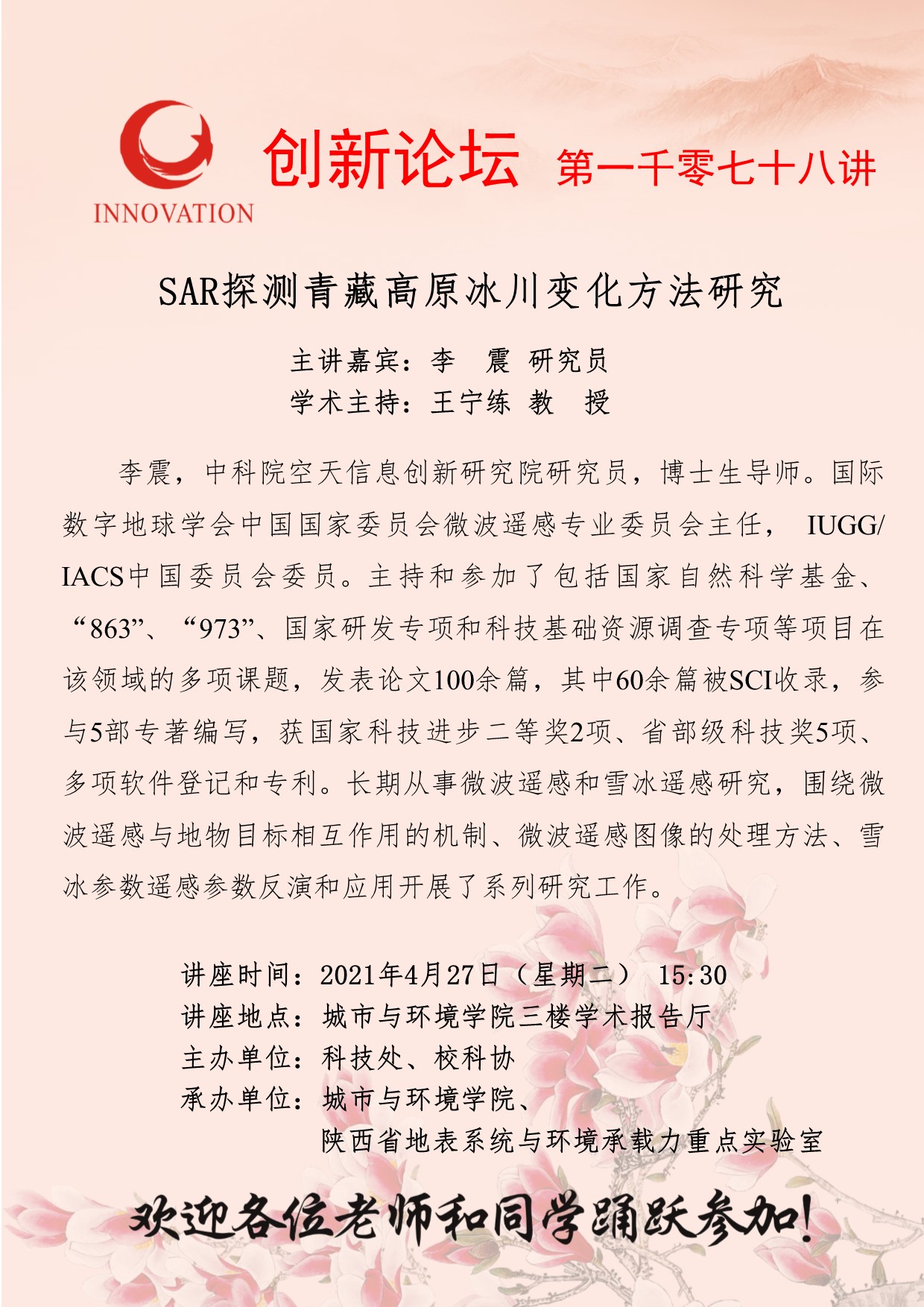 创新论坛 第一千零七十八讲:SAR探测青藏高原冰川变化方法研究