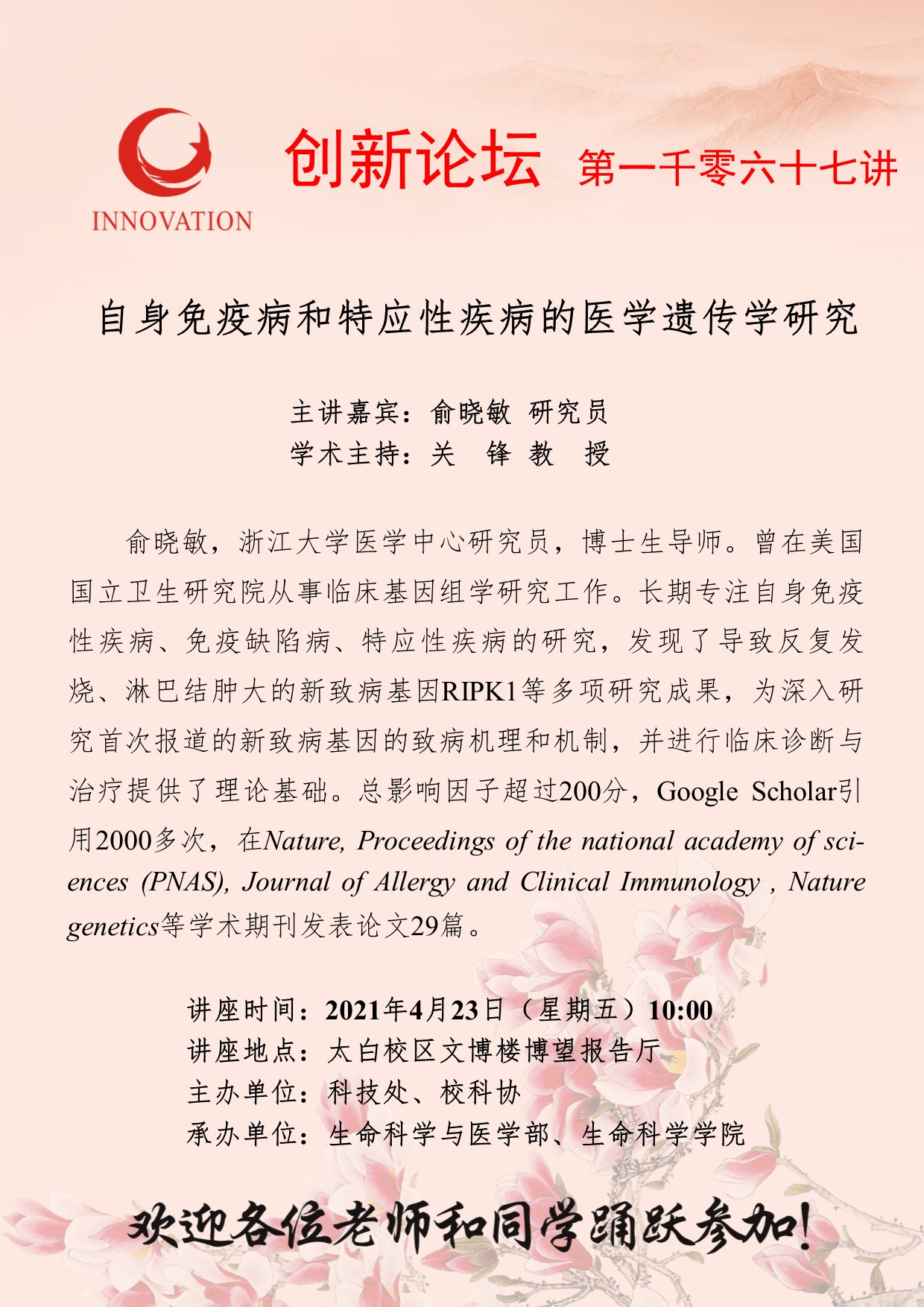 乐鱼web版登录入口创新论坛第一千零六十七讲:自身免疫病和特应性疾病的医学遗传学研究