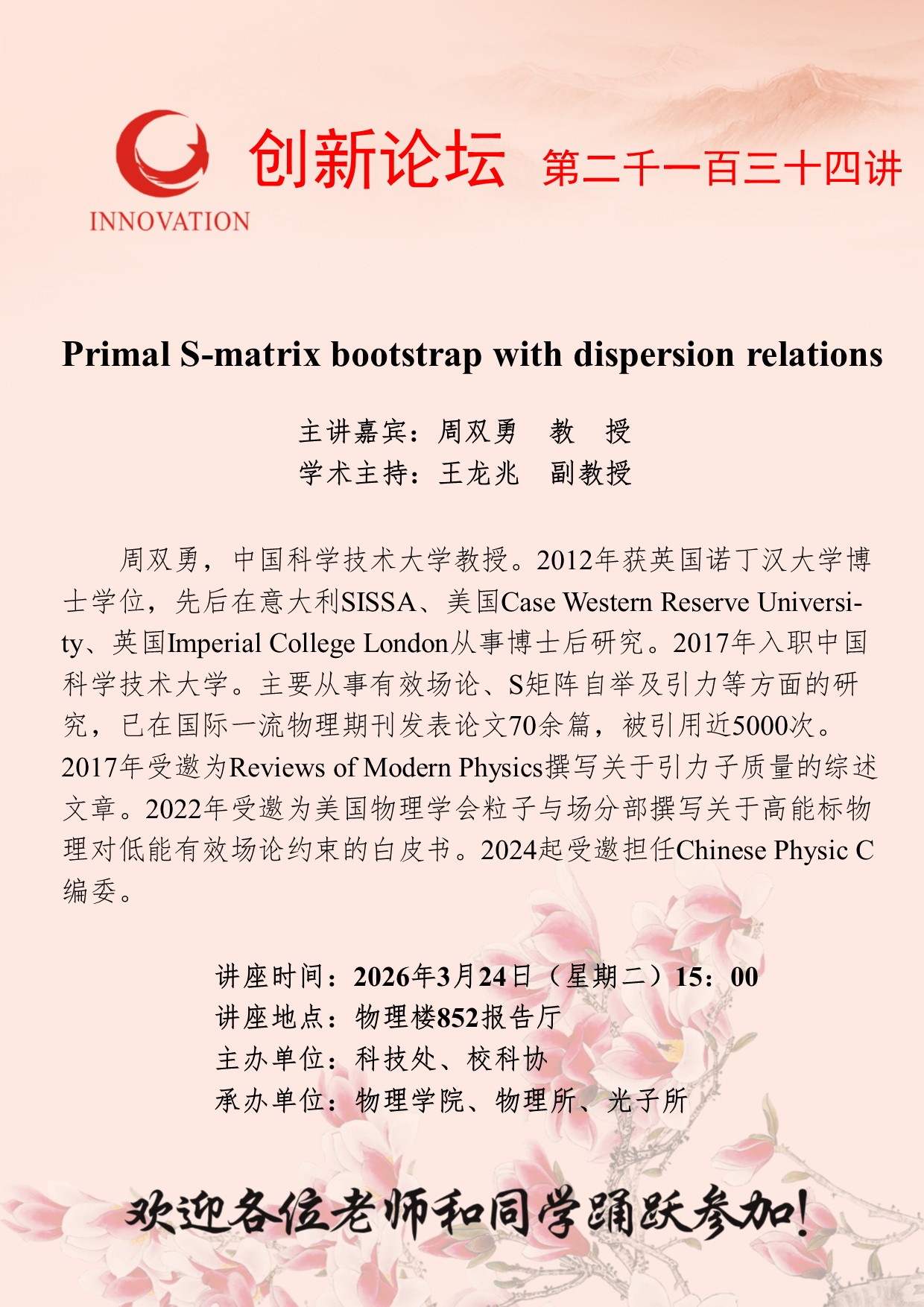 乐鱼web版登录入口创新论坛第二千一百三十四讲:Primal S-matrix bootstrap with dispersion relations