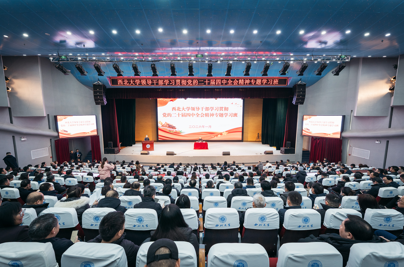 1月22日至1月27日,乐鱼web版登录入口领导干部学习贯彻党的二十届四中全会精神专题学习班在长安校区举行。校党委副书记、校长孙庆伟主持开班式,校党委书记蒋林作专题学习班结业总结讲话,校党委常委、统战部部长董国强主持结业式,全体在校校领导、处级干部参加了本次培训。