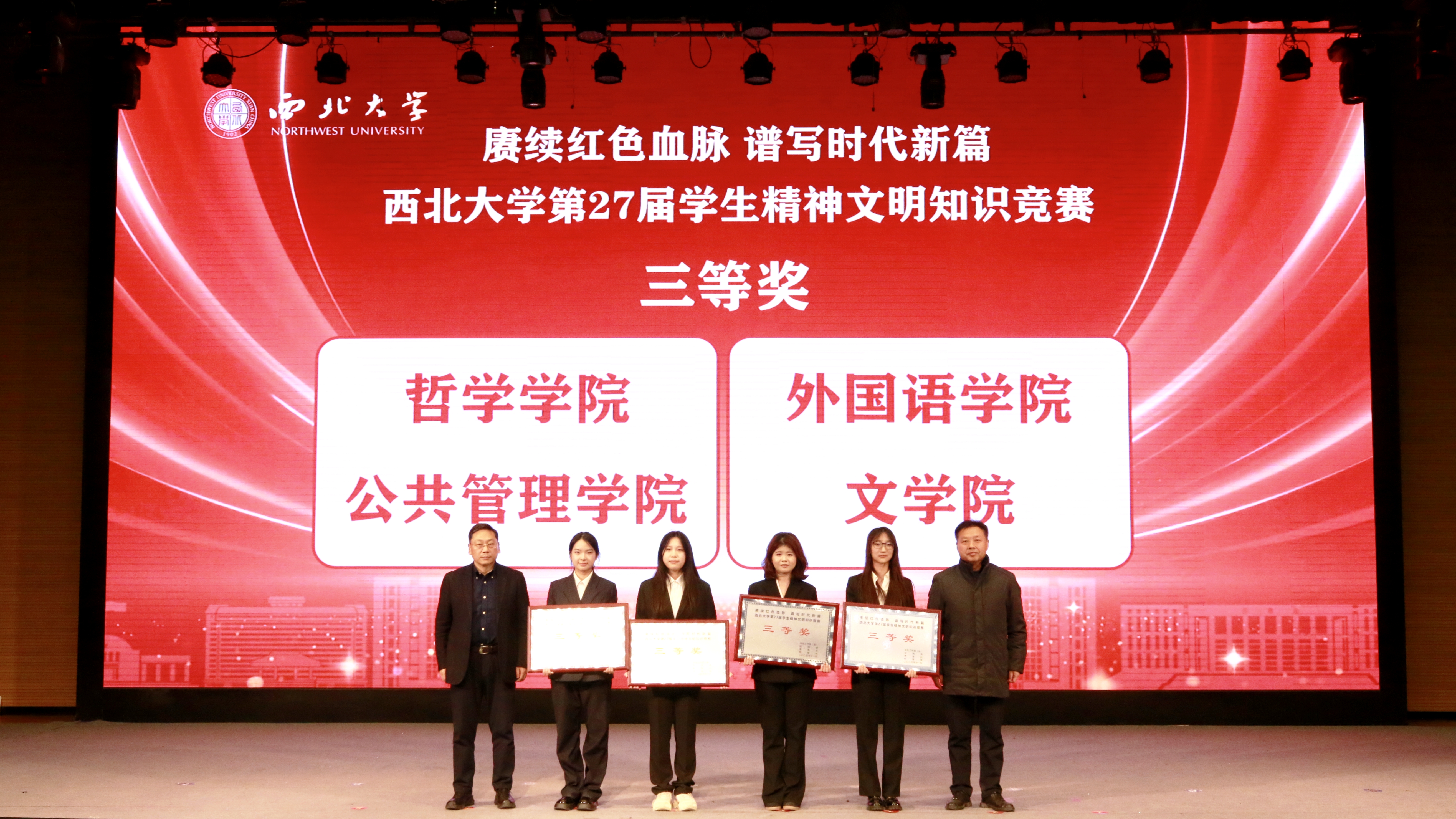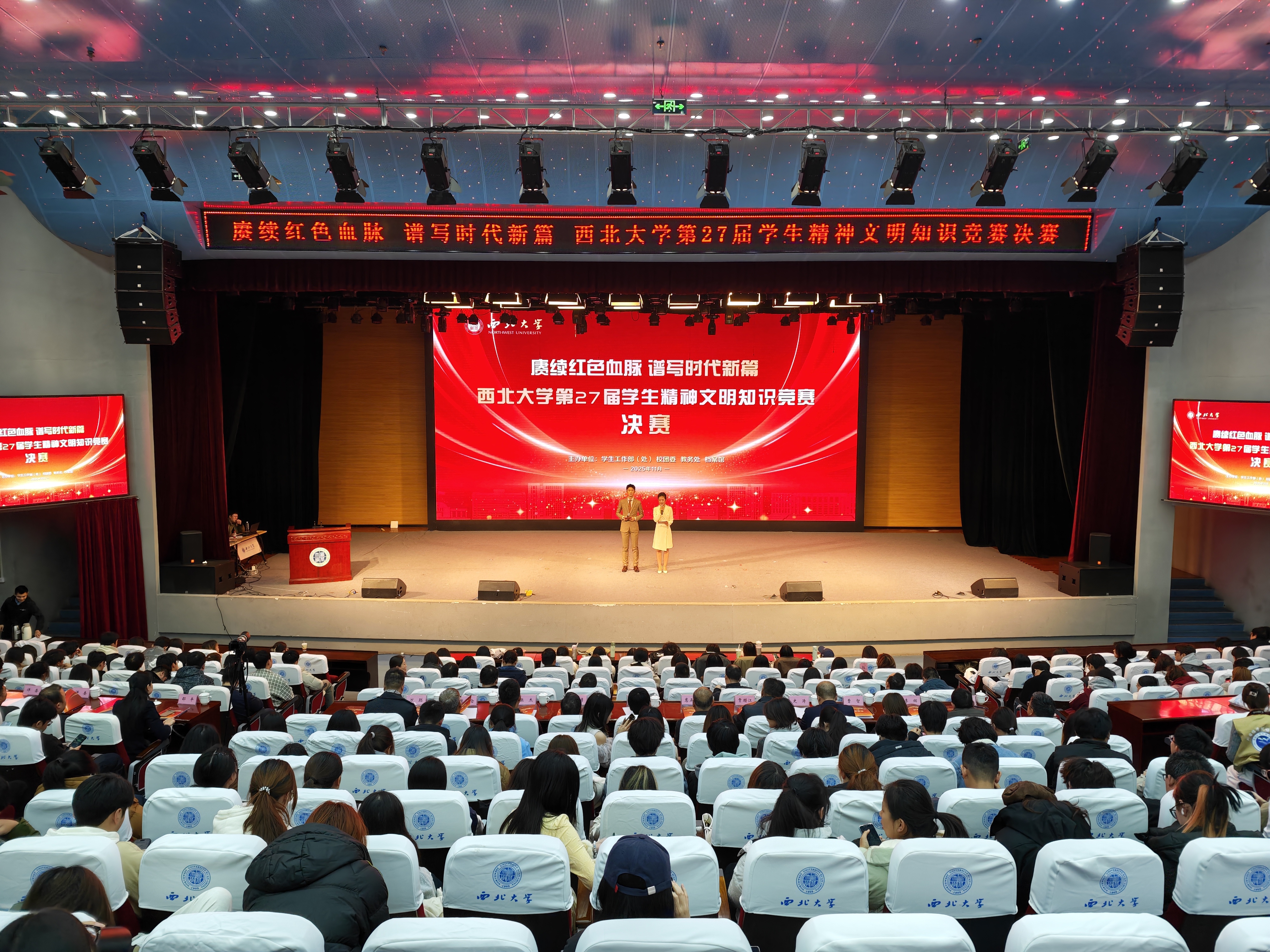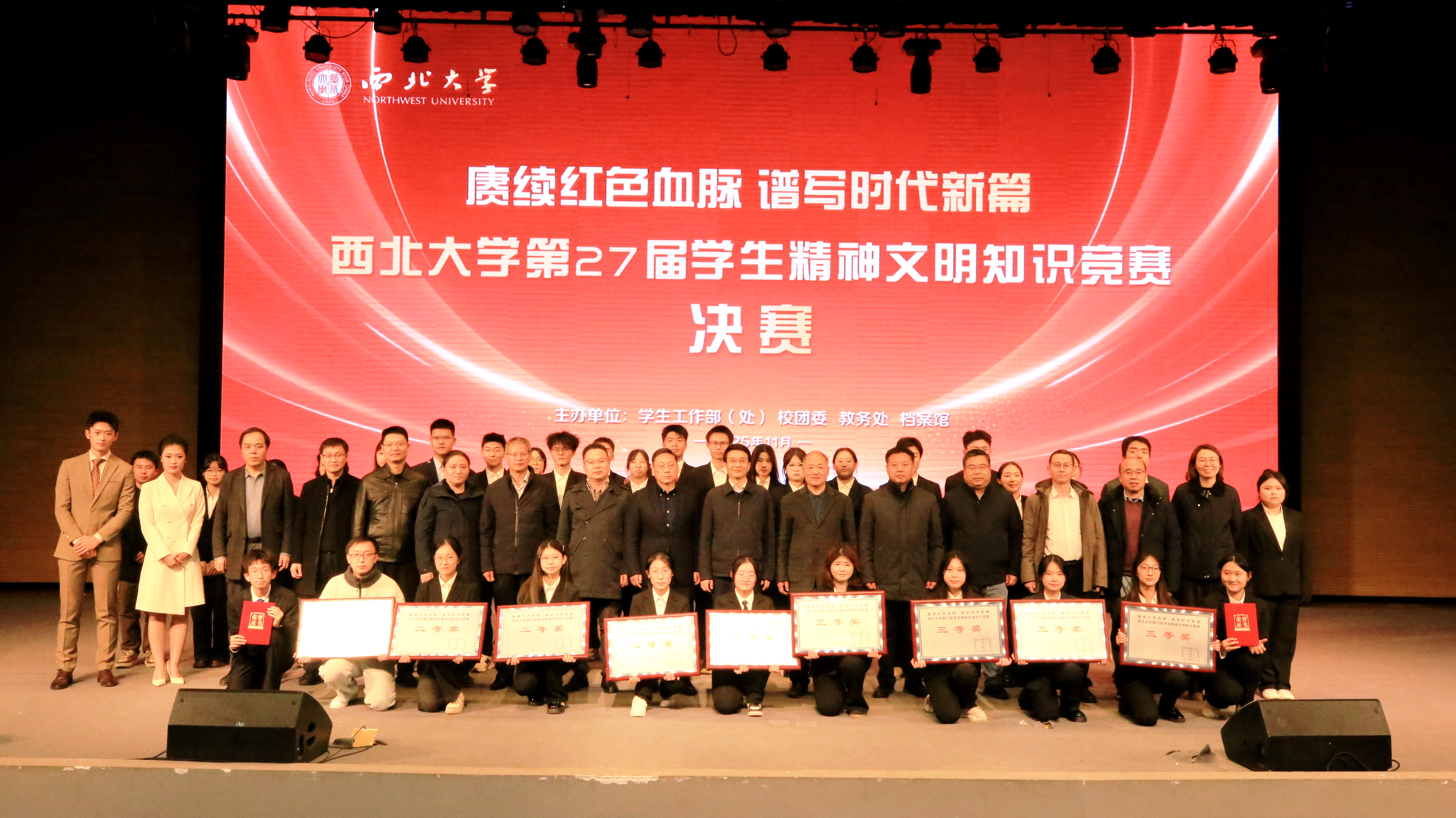 11月26日,乐鱼web版登录入口第27届学生精神文明知识竞赛决赛在长安校区圆满落幕,活动以“赓续红色血脉 谱写时代新篇”为主题。校党委副书记张远军、校学生工作领导小组成员单位负责人、各院(系)学生工作负责人、辅导员及500余名学生代表现场观看了比赛。活动由学生工作部、校团委、教务处和档案馆联合主办。