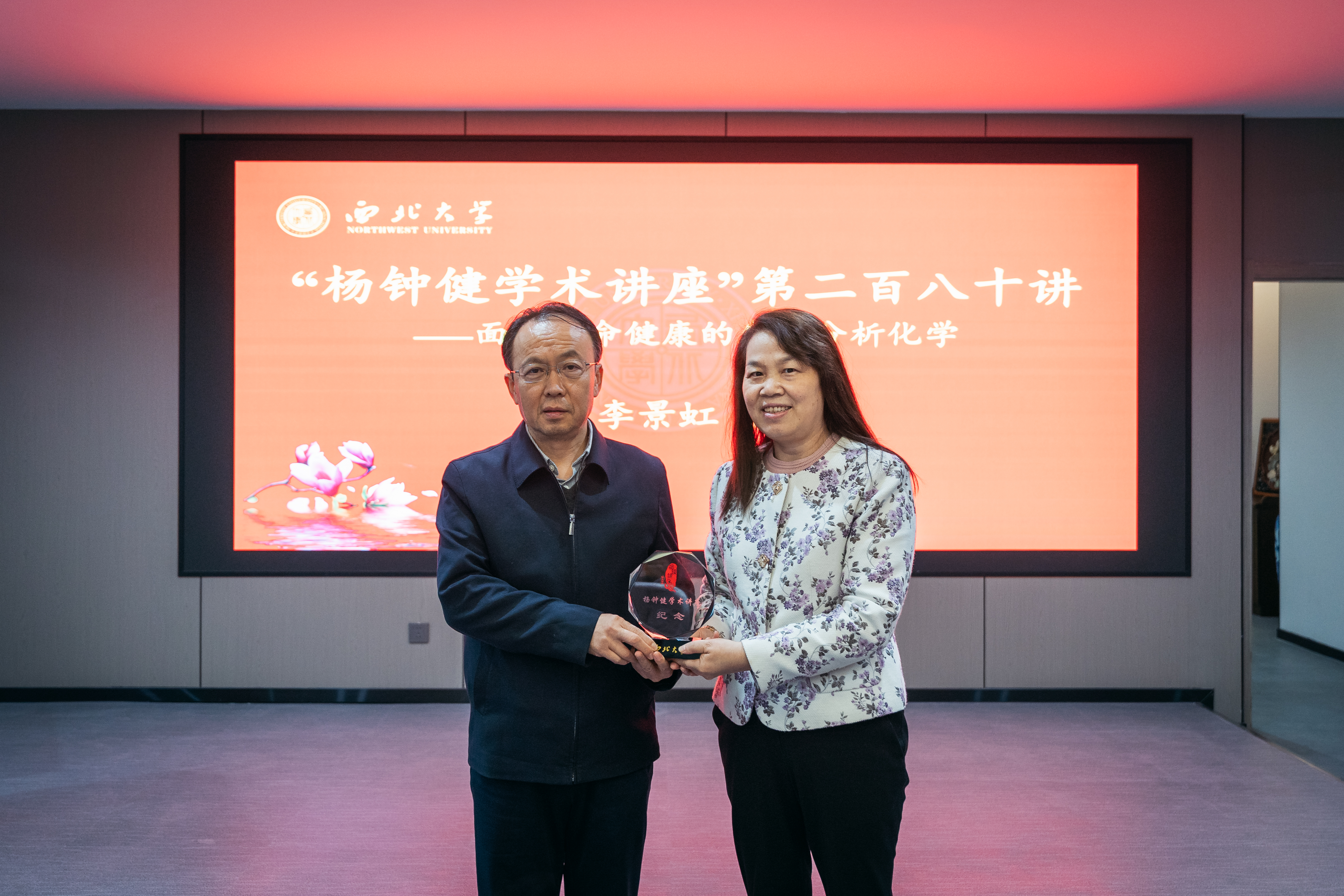 11月7日上午,中国科学院院士、清华大学化学系教授李景虹做客乐鱼web版登录入口“杨钟健学术讲座”,为师生作了题为“面向生命健康的生物分析化学”的报告。校党委常委、副校长范代娣致欢迎辞并向李景虹院士赠送了“杨钟健学术讲座”纪念牌,化工学院副院长李冬主持了学术报告会。学校相关部门负责人及学校师生代表参加了报告会。