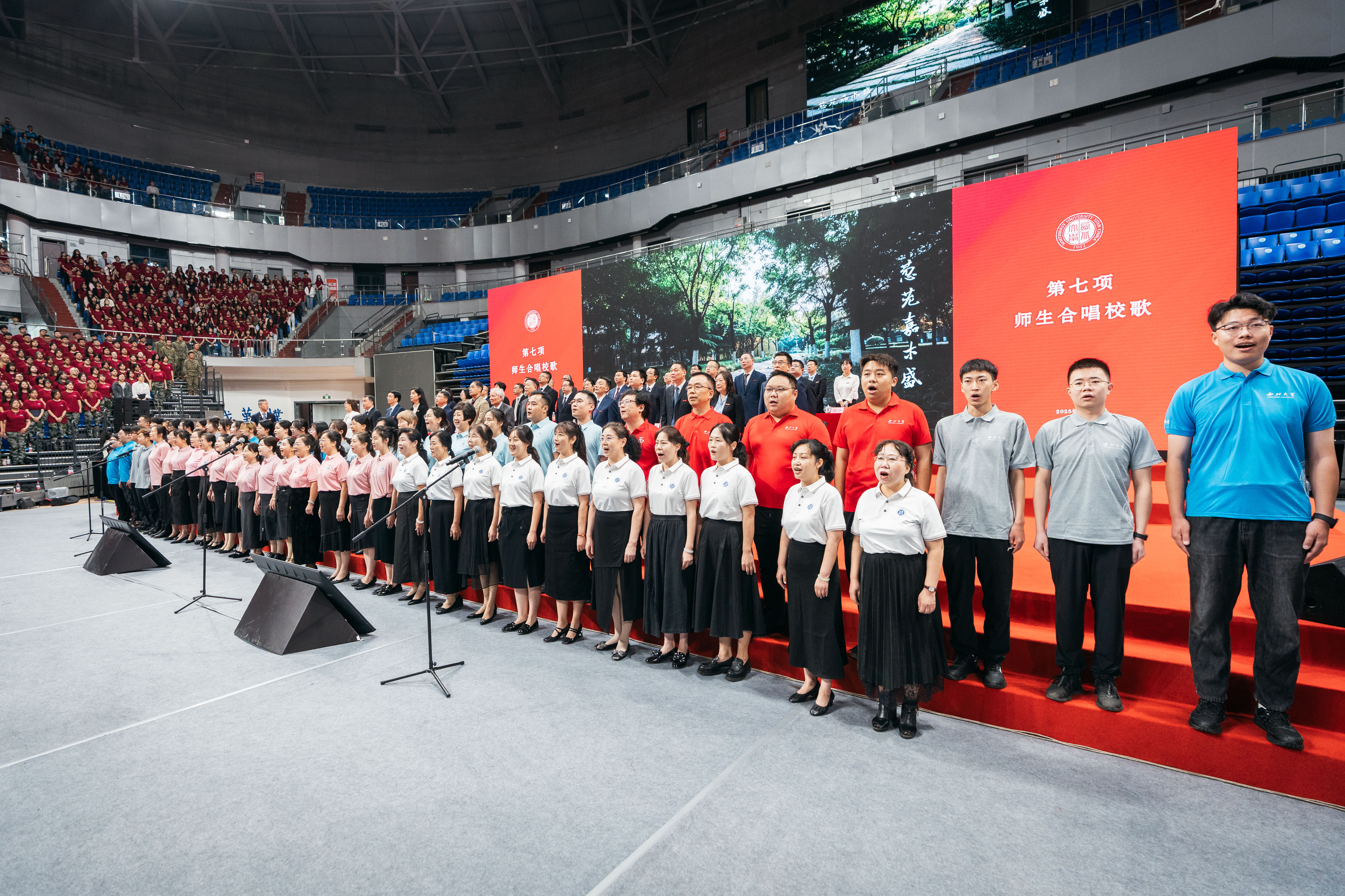 在教工合唱团、学生合唱团的领唱下,全体师生合唱《乐鱼web版登录入口校歌》。