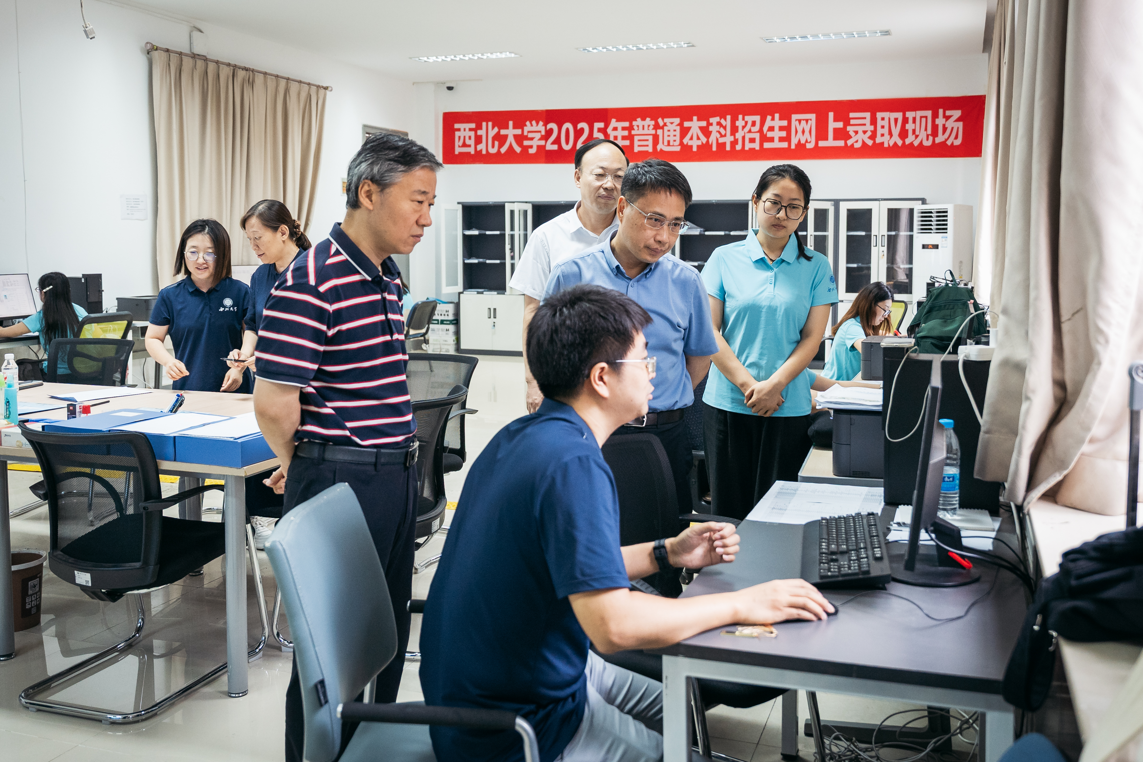 7月21日下午,校党委书记蒋林、校长孙庆伟、副校长曹蓉前往2025年本科招生录取现场,实地调研招生进展情况并开展工作指导。党(校)办、教务处相关负责人陪同。