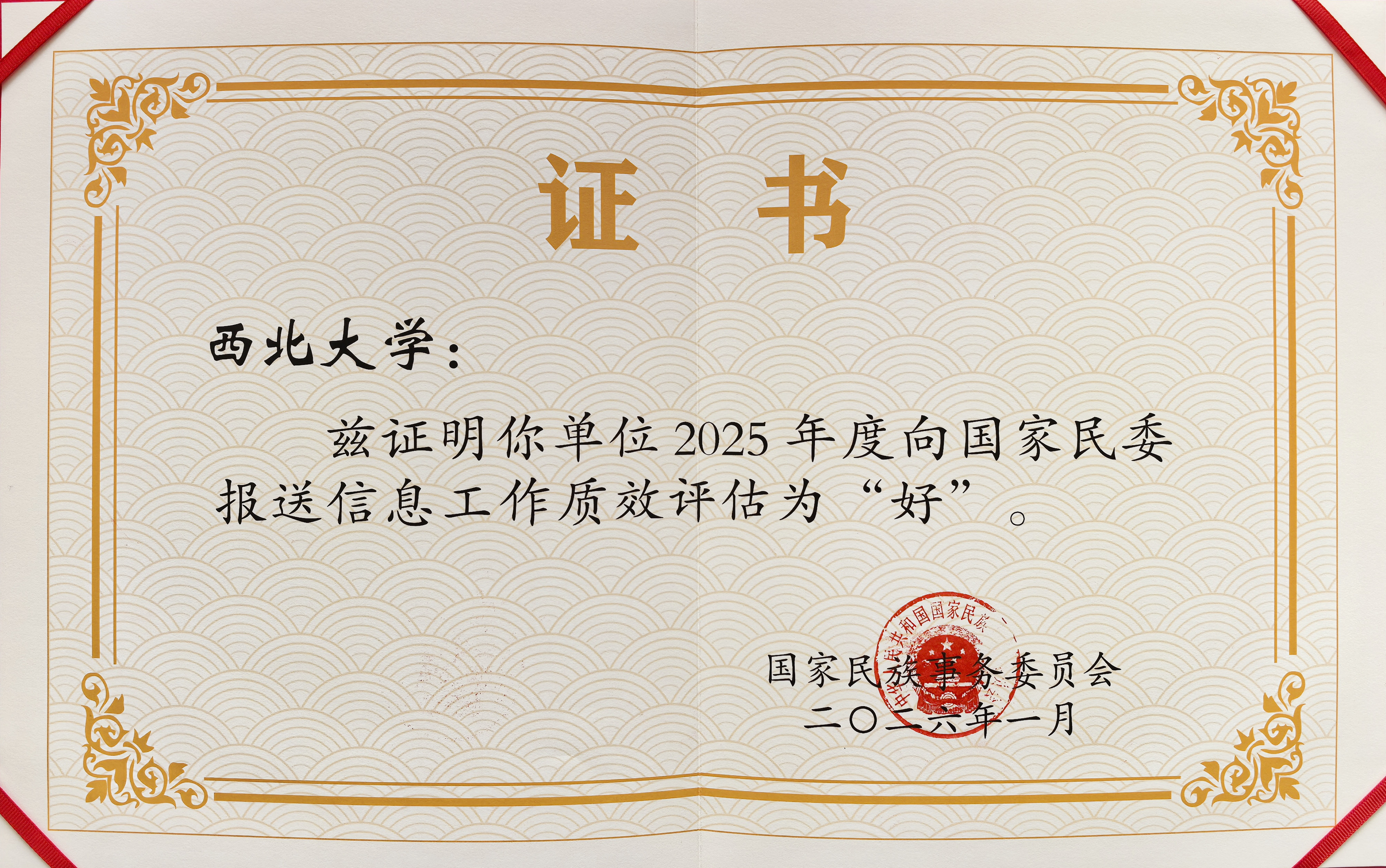 近日,国家民委、陕西省民宗委先后发布2025年民族信息直报工作质效评估结果以及关于表彰先进单位的决定。乐鱼web版登录入口荣获2025年度向国家民委报送信息工作质效评估“好”等次、2025年陕西民族信息直报工作先进单位。这是学校获批国家民委信息直报点以来首次获得该项表彰。