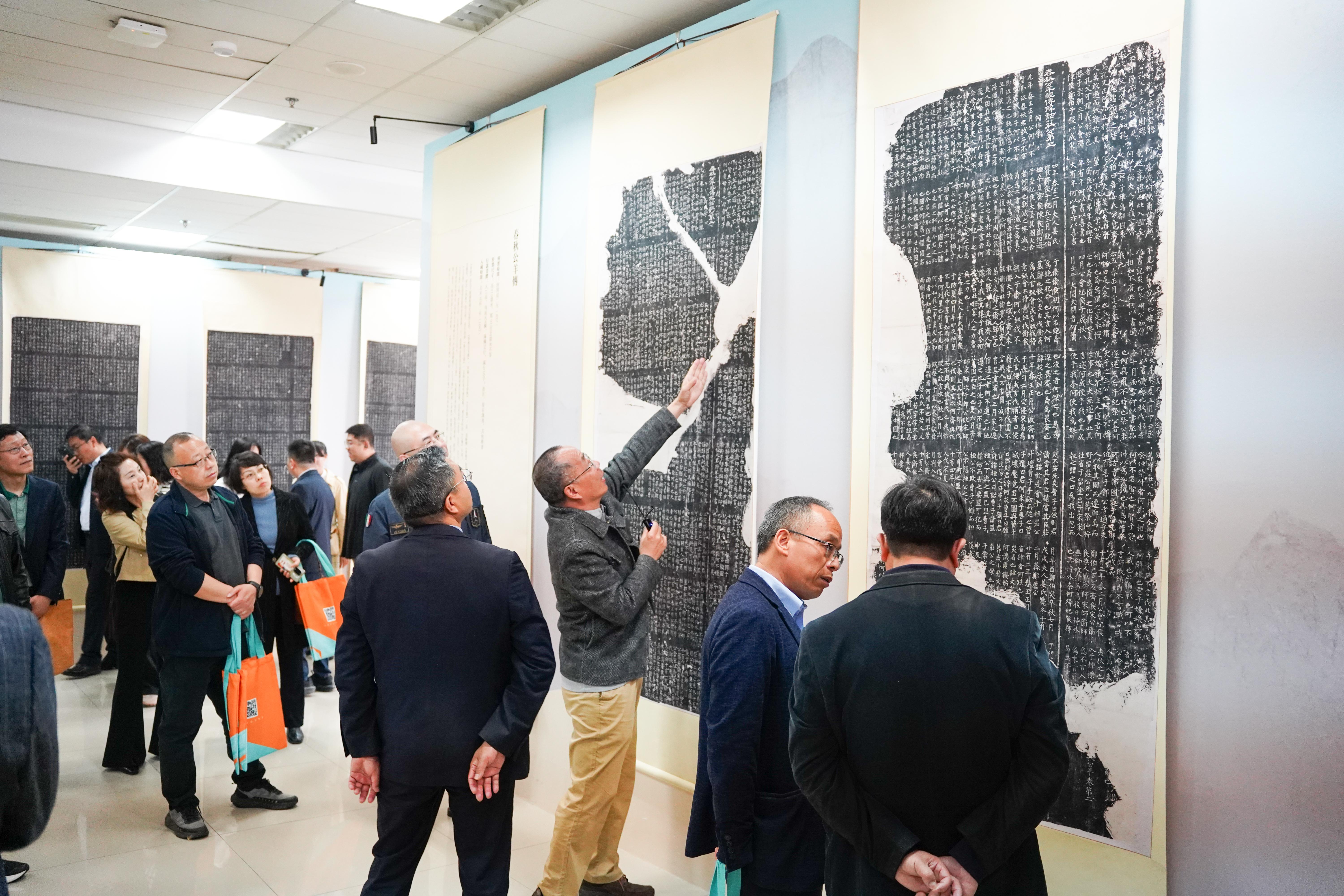 杨峰和谷渤分别进行了致辞。仪式结束后,与会人员参观《开成石经》拓片展。陈根远作了“中华文化的原典:开成石经”专题讲座。