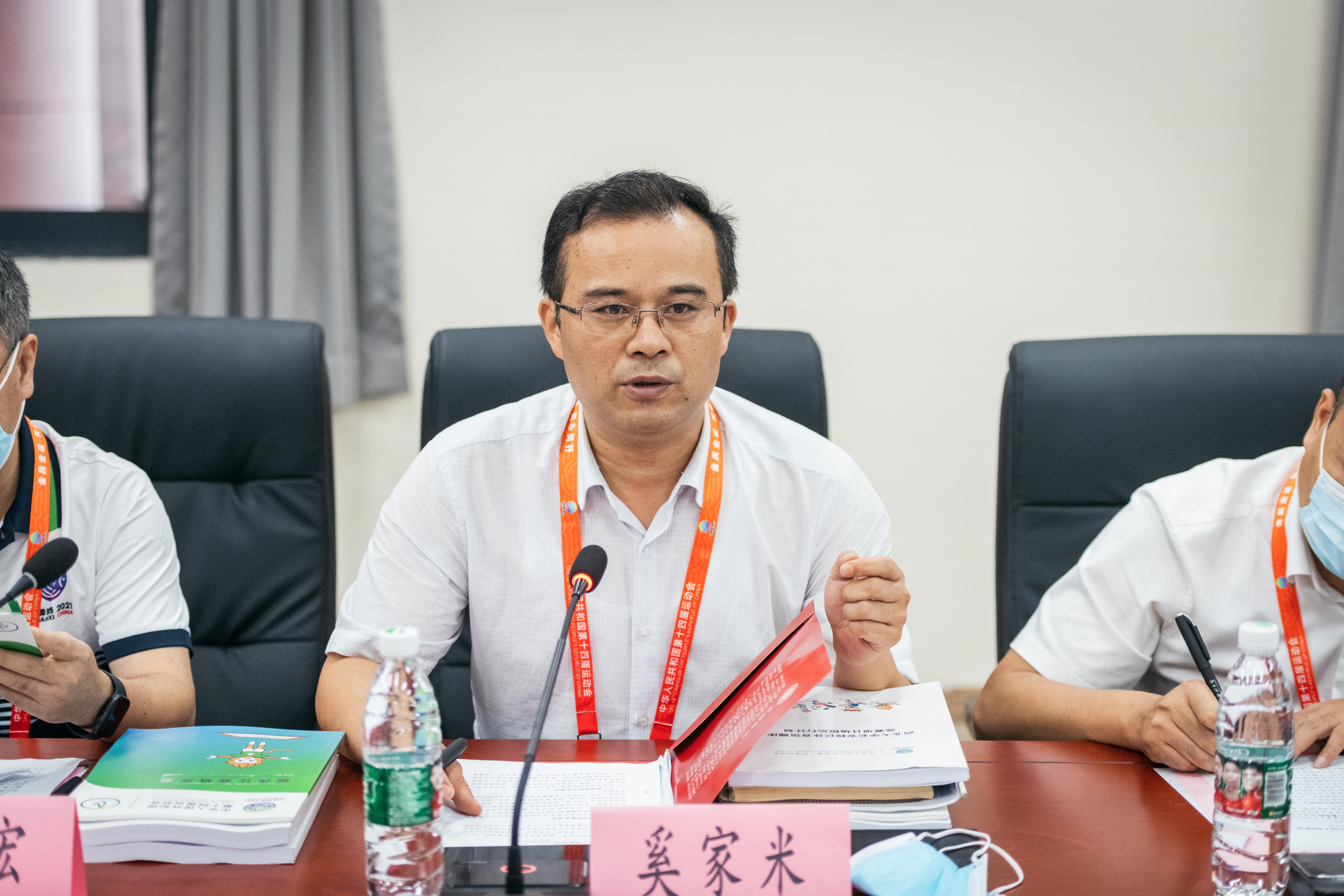 奚家米介绍了竞赛场馆基本情况、疫情防控情况和赛事筹备情况,从理顺体制机制、聚焦赛事组织、扩大新闻宣传、强化服务保障等方面重点介绍了赛事筹办情况,指出通过前期精心准备,目前各项工作系统有序、条块畅达、执行有力。