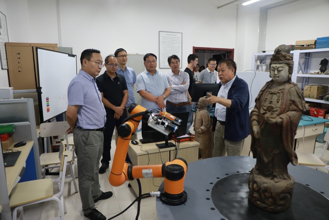 随后,与会人员参观了场景数字化、陶俑数字化、虚拟修复、虚拟展示等四个实验室,深入了解了近年来在秦陵数字化方面取得的成果和兵马俑1号、3号坑大场景三维建模、跪射俑和将军俑的打印、VR交互式虚拟修复、C24和泡钉虚拟修复等。