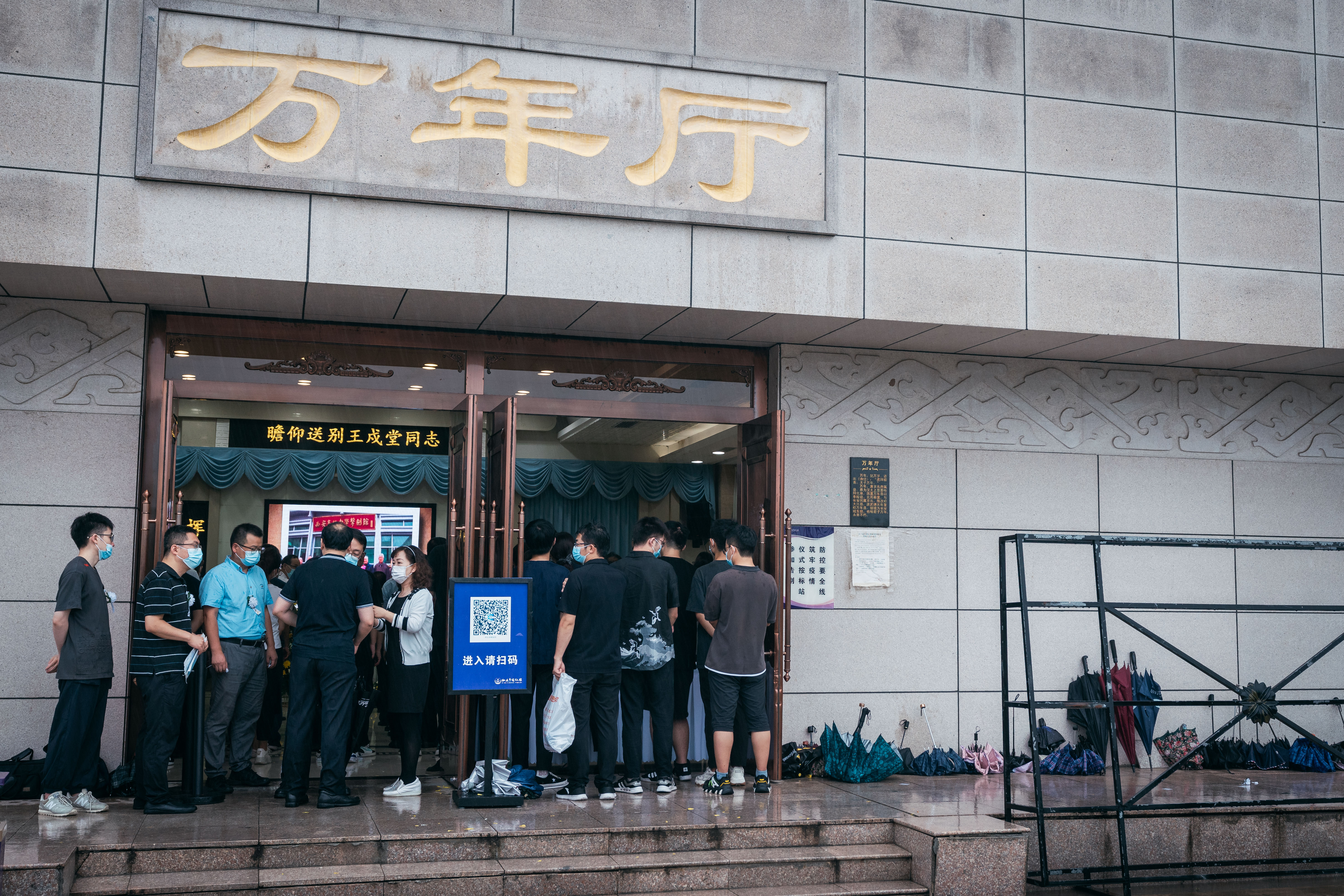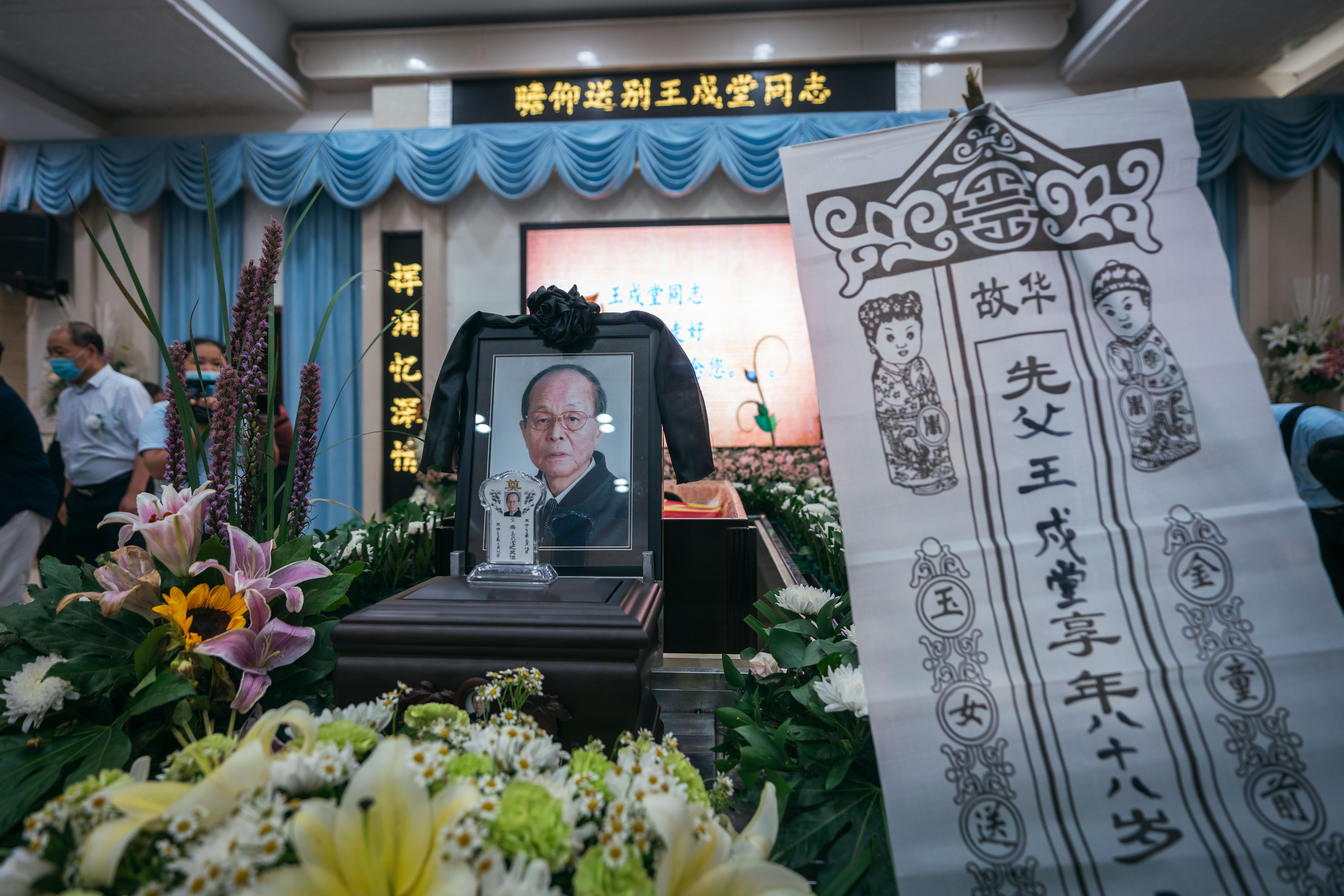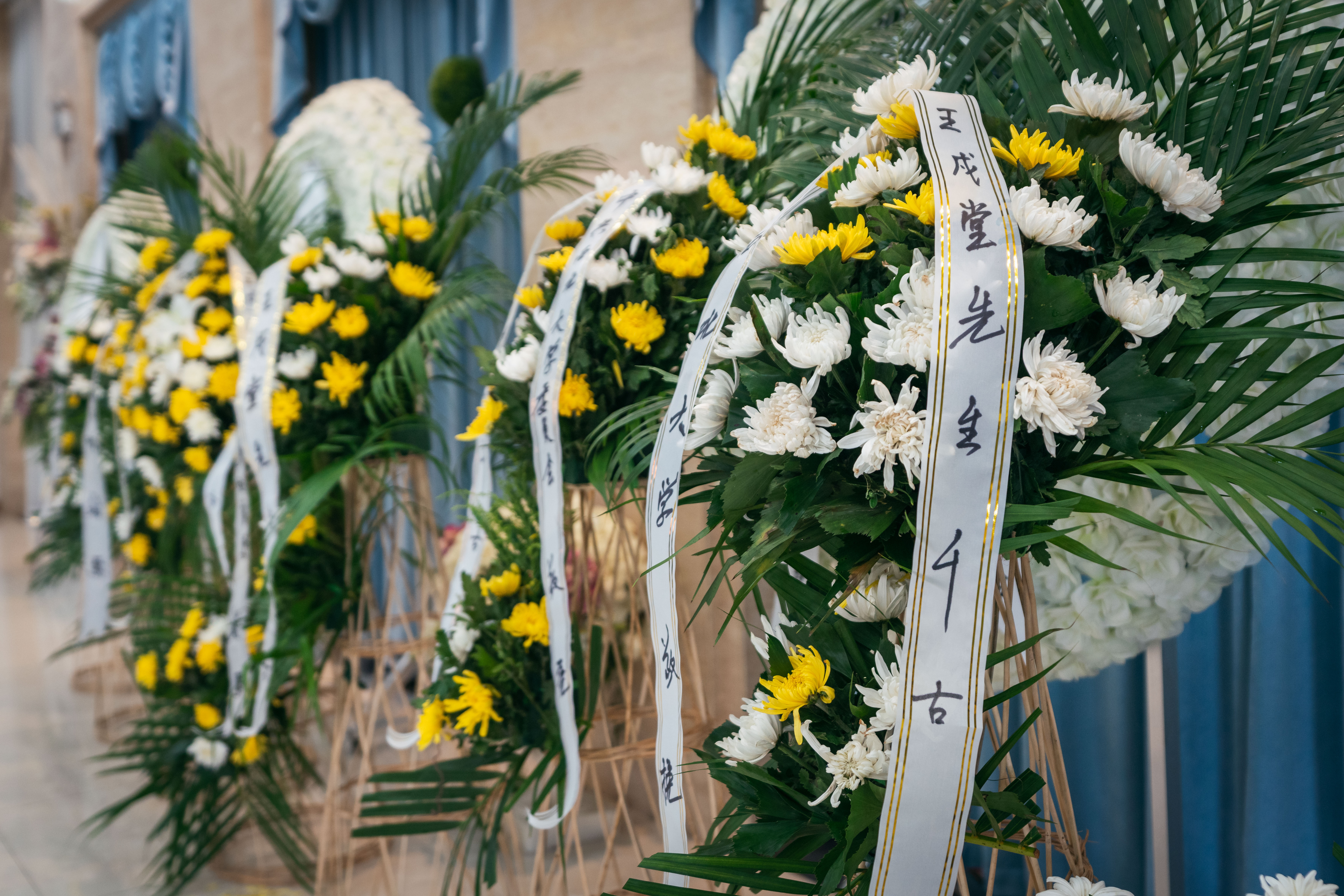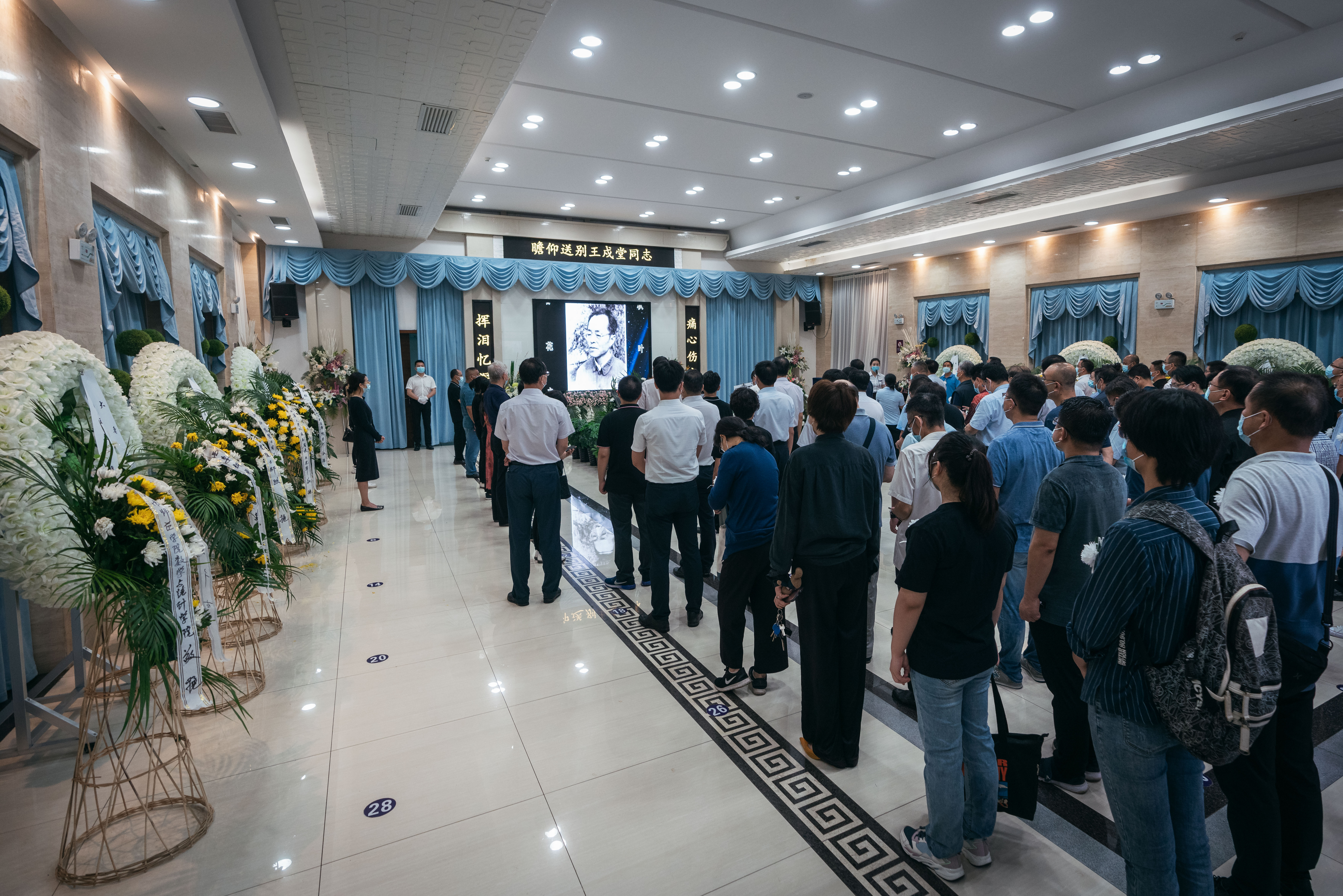 到场的领导、亲朋好友、学界同仁和师生以菊花寄托哀思,三次深鞠躬向王戍堂教授的遗体做最后告别,并一一与家属握手慰问。