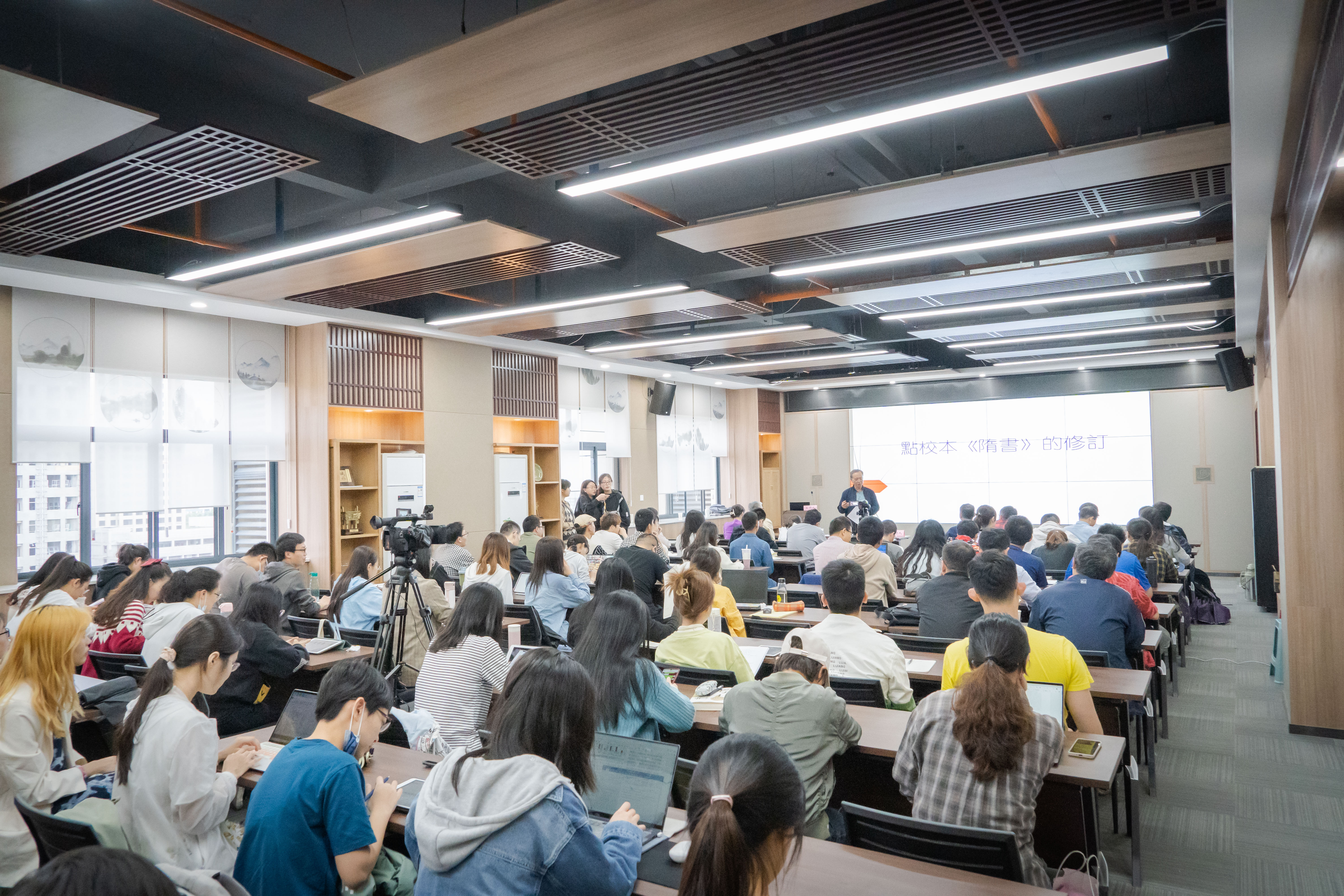 讲座中,吴玉贵主要从《五代纪传》的修撰、《五代史志》的修撰以及《隋书》的流传与整理等三个部分进行介绍。他认为,《隋书》是《五代纪传》的一部分,《五代史志》是《隋书》的一部分,将《五代纪传》《五代史志》和《隋书》的关系清晰的陈述总结出来,具有重要的研究意义。吴玉贵列举了《隋书》目前可见的九种版本,对于版本校对及相关问题进行解释和说明,还介绍了自己在修改《隋书》点校本的工作中,所采取的不同于以往的方式和方法,仍以百衲本为底本,严格遵守有底本校勘的原则,凡有改动,必出校说明,以版本校为基础,在尽可能确认同一史源的前提下,充分利用相关正史、类书、文集、墓志等资料进行他校。通过科学、严谨的整理,为学术界提供一个较为可靠、便于利用的点校修订本。