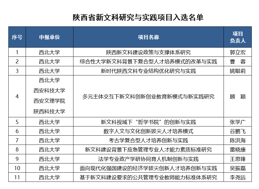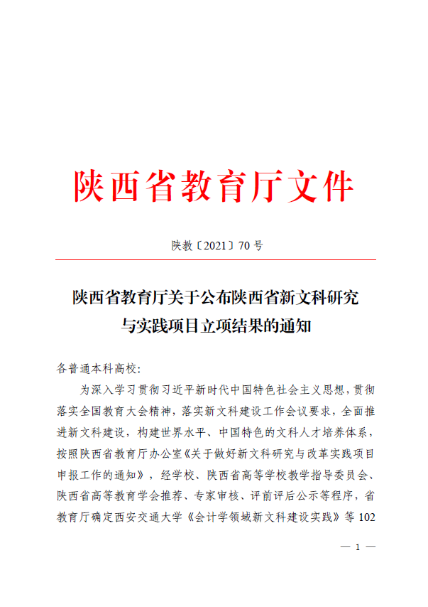 近日,陕西省教育厅公布省级新文科研究与实践项目名单,乐鱼web版登录入口《陕西新文科建设政策与支撑体系研究》等11个项目入选,获批数量居全省首位。