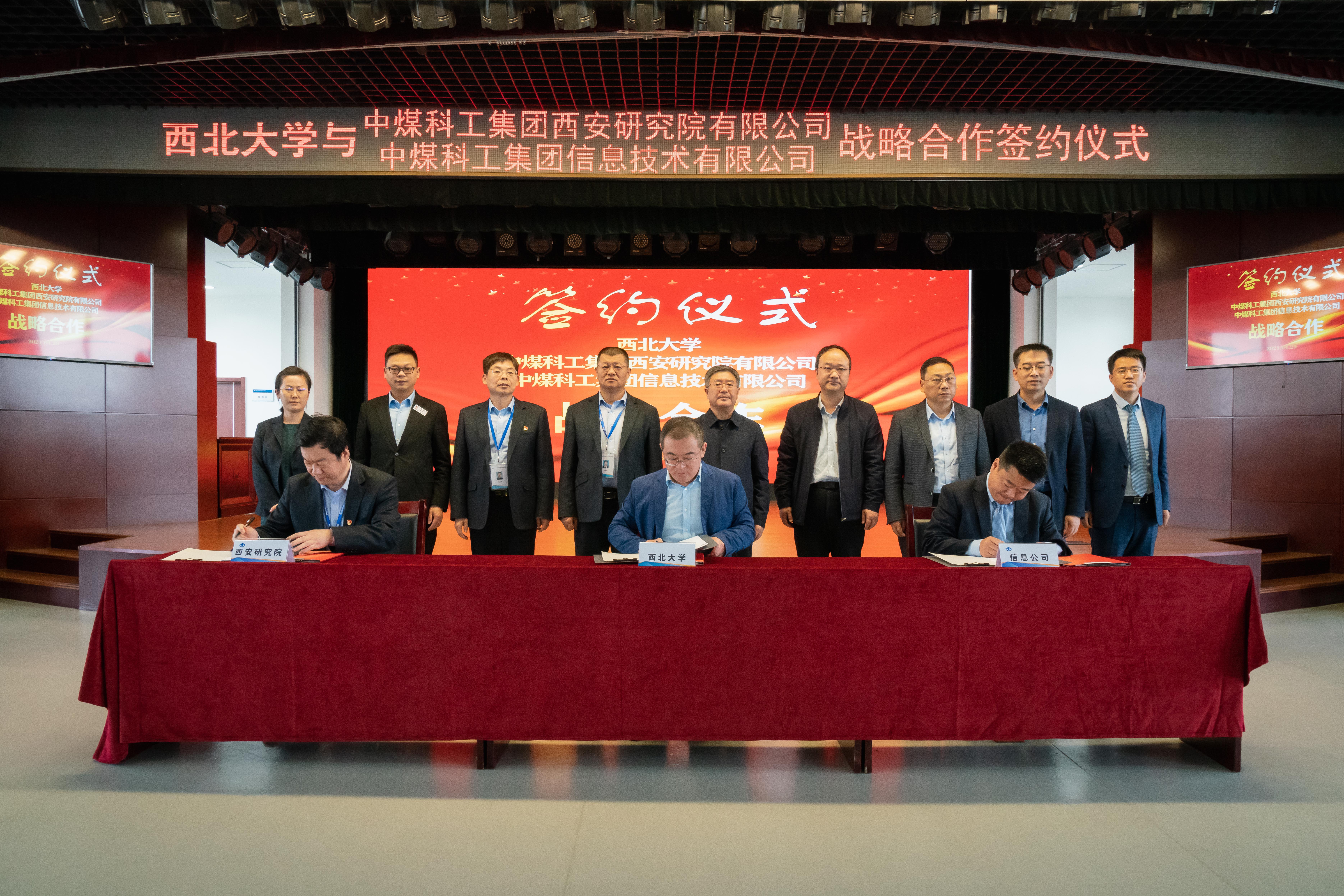 4月29日下午,乐鱼web版登录入口与中煤科工集团西安研究院及信息技术有限公司合作协议签约仪式在中煤科工集团西安研究院举行。校长郭立宏,校党委常委、副校长常江,中煤科工集团西安研究院党委书记、董事长王海军,党委副书记、总经理姚宁平,副总经理刘程,中煤科工集团信息技术有限公司副总经理张逸群,副总工程师刘宝生出席仪式。双方相关部门负责人参加仪式。签约仪式由西安研究院纪委书记周崇军主持。