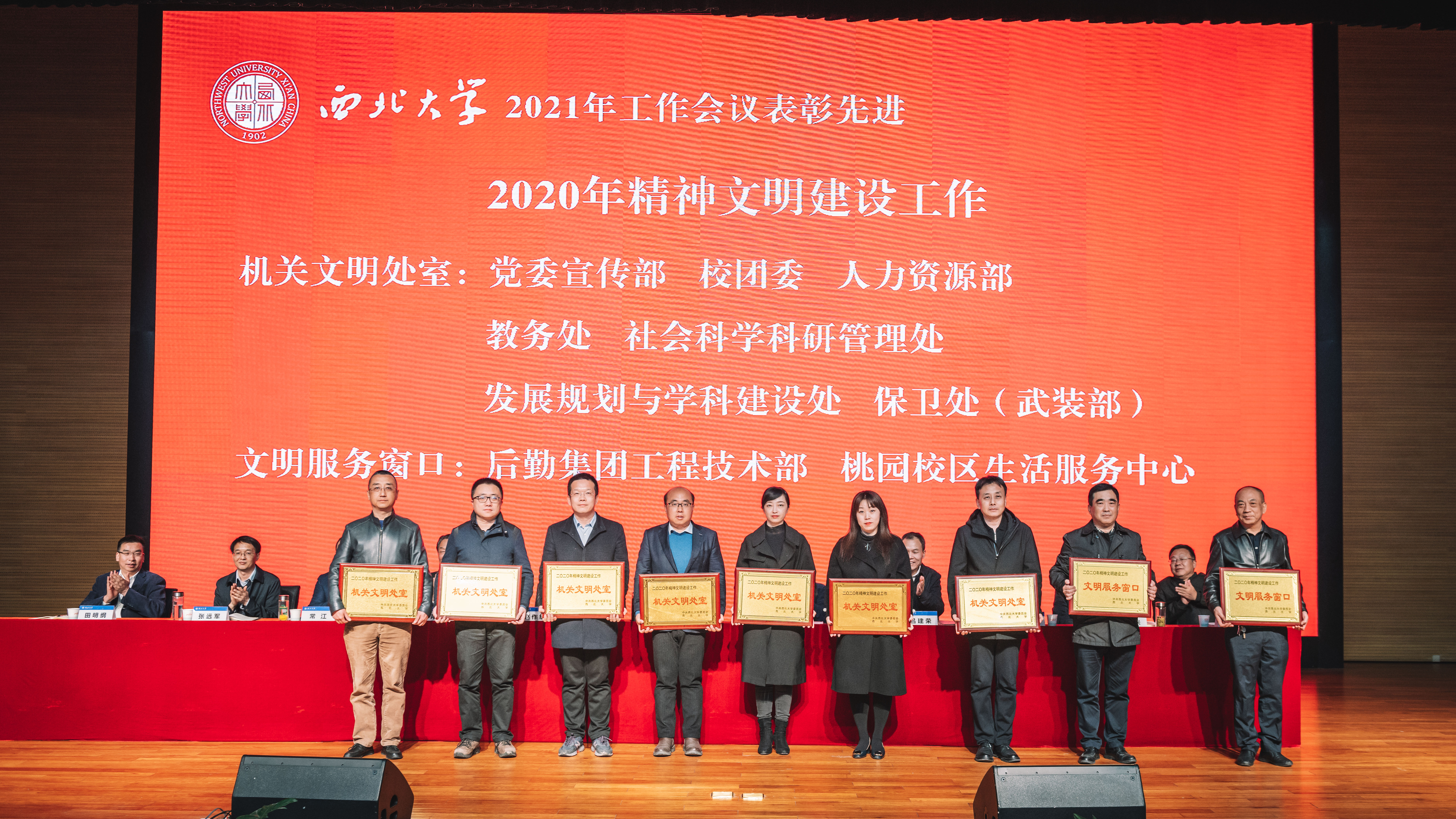 与会领导为2020年精神文明建设工作“先进单位”、2020年“机关文明处室”“文明服务窗口”、2019-2020年党风廉政建设先进集体、2019-2020年党风廉政建设先进个人颁奖。
