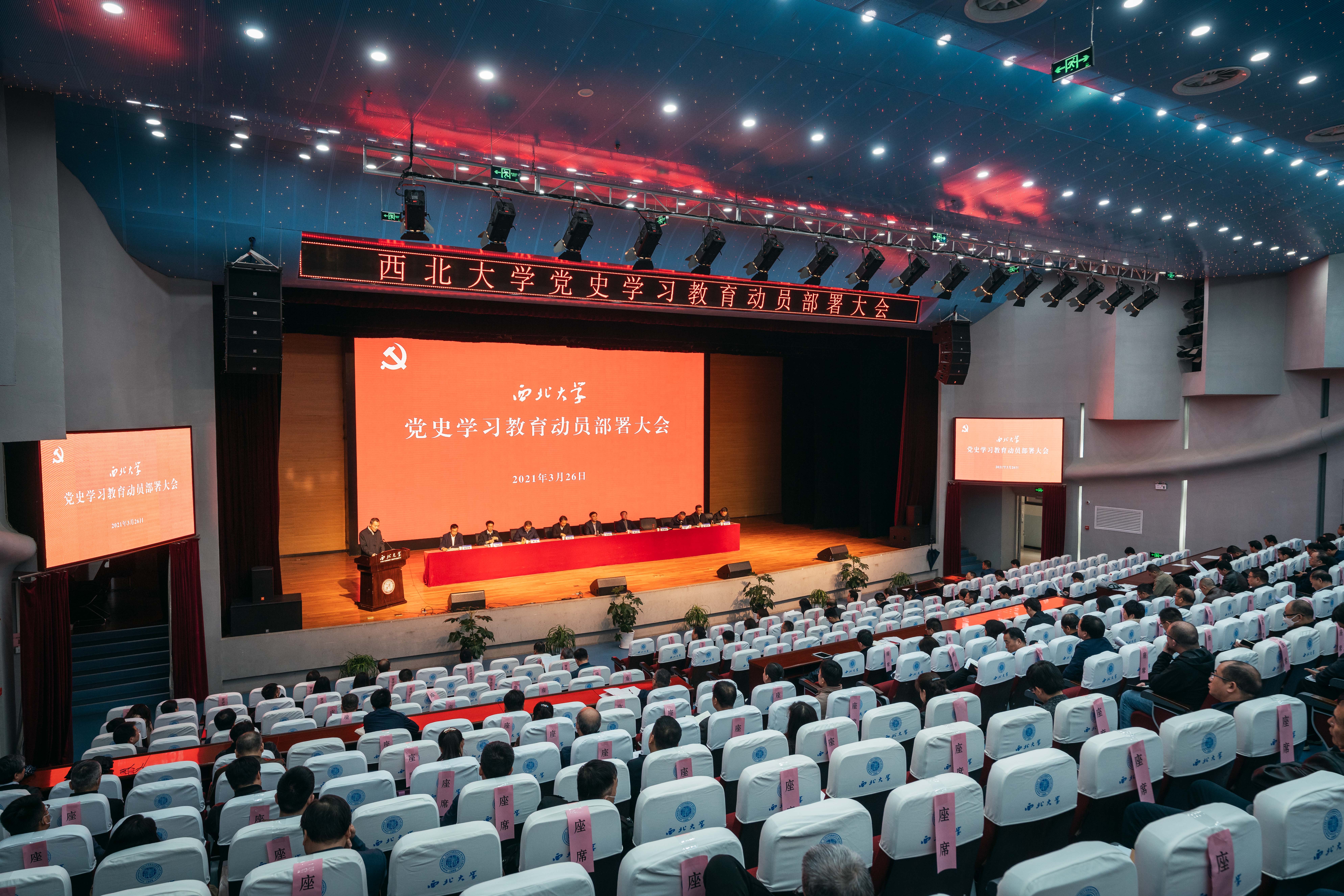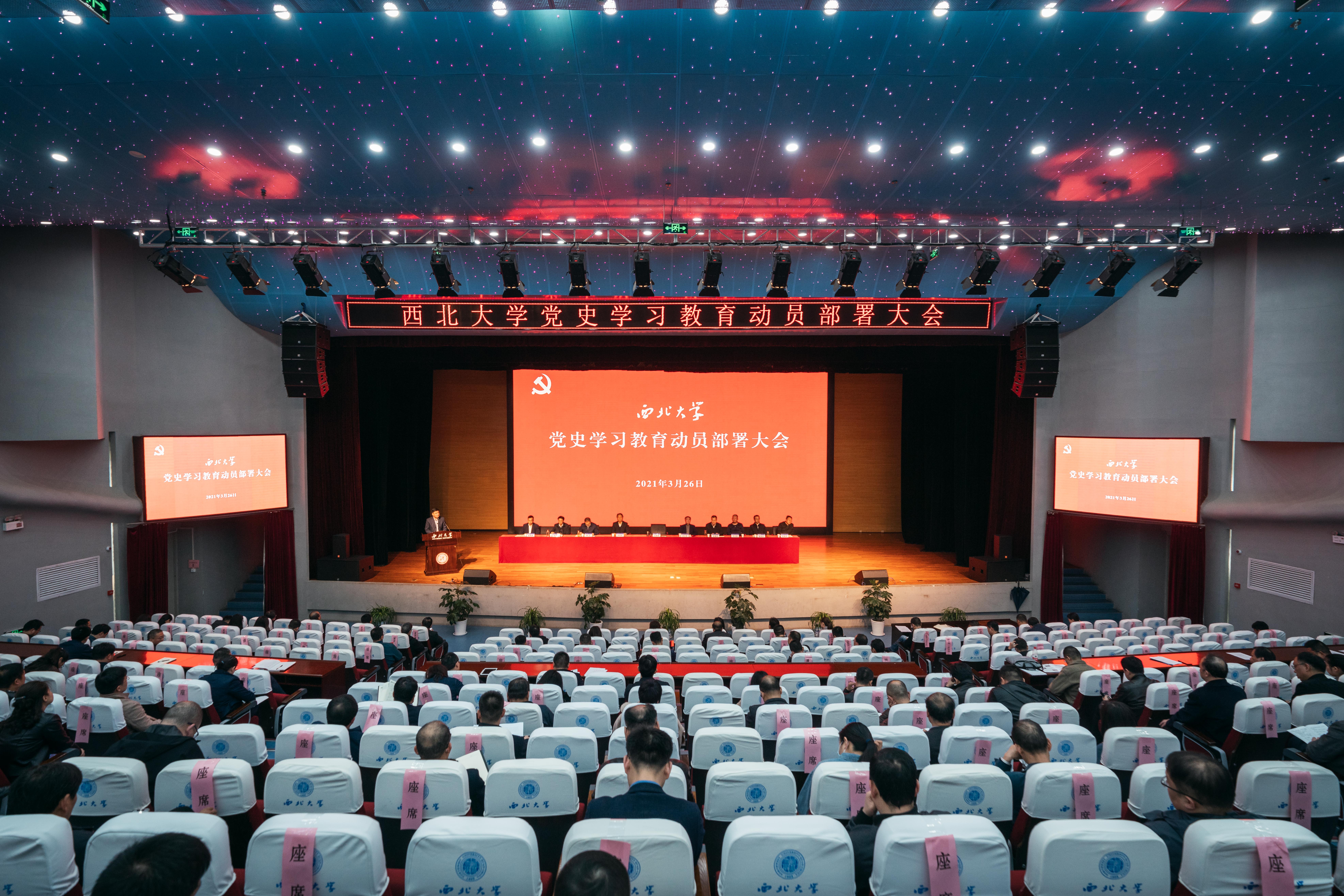 3月26日下午,学校在长安校区召开党史学习教育动员部署大会,深入学习习近平总书记在党史学习教育动员大会上的重要讲话精神,认真贯彻落实党中央精神和省委、省委教育工委工作要求,对学校党史学习教育进行全面部署。会议由校党委副书记、校长、党史学习教育领导小组副组长郭立宏主持,全体校领导、全校副处级以上干部(无行政级别院系班子成员)、校党史学习教育宣讲团成员参加会议。