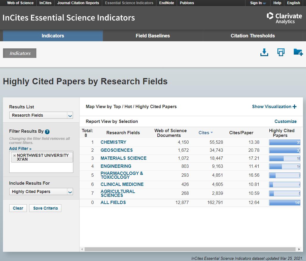 3月25日,科睿唯安基本科学指标数据库发布最新全球前1%学科领域榜单,乐鱼web版登录入口农业科学首次上榜。至此,学校共有地球科学、化学、材料科学、工程学、临床医学、药理学与毒理学、农业科学等7个学科领域进入全球前1%,较“十三五”开局新增4个。