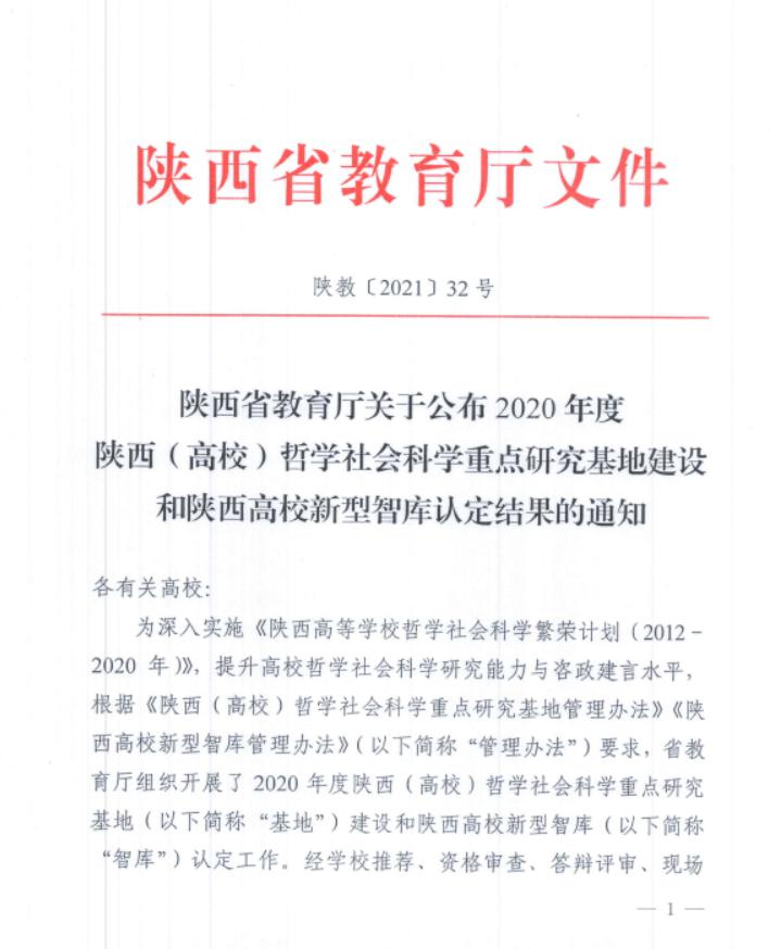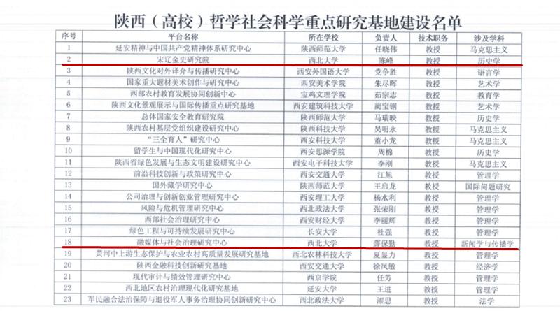近日,陕西省教育厅公布2020年度陕西(高校)哲学社会科学重点研究基地建设名单,本年度全省共批准建设23家基地。由乐鱼web版登录入口历史学院申报的“宋辽金史研究院”、新闻传播学院申报的“融媒体与社会治理研究中心”两所研究机构获批建设。