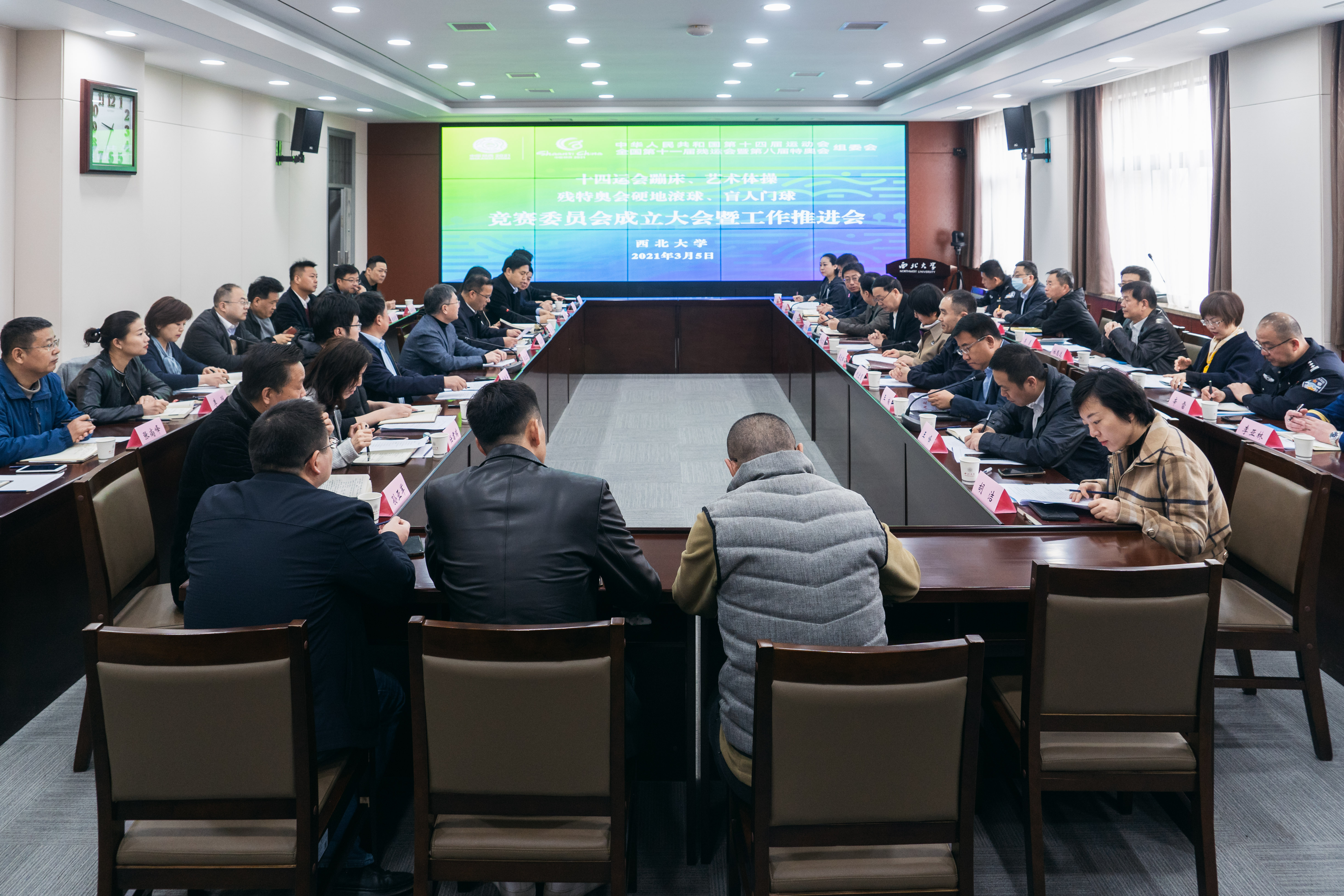 3月5日上午,学校在长安校区召开第十四届全国运动会蹦床、艺术体操及第八届残特奥会硬地滚球、盲人门球竞赛委员会成立大会暨工作推进会。校长郭立宏、省残联二级巡视员李文龙、长安区副区长梁文辉、省教育厅体卫艺处处长刘宏恩、省社会体育运动发展中心主任王劲松、十四运会组委会竞赛组织部竞委会处处长温宏、省体操运动管理中心副主任赵旭,长安区以及学校相关职能部门负责人参加会议。会议由校党委常委、副校长奚家米主持。
