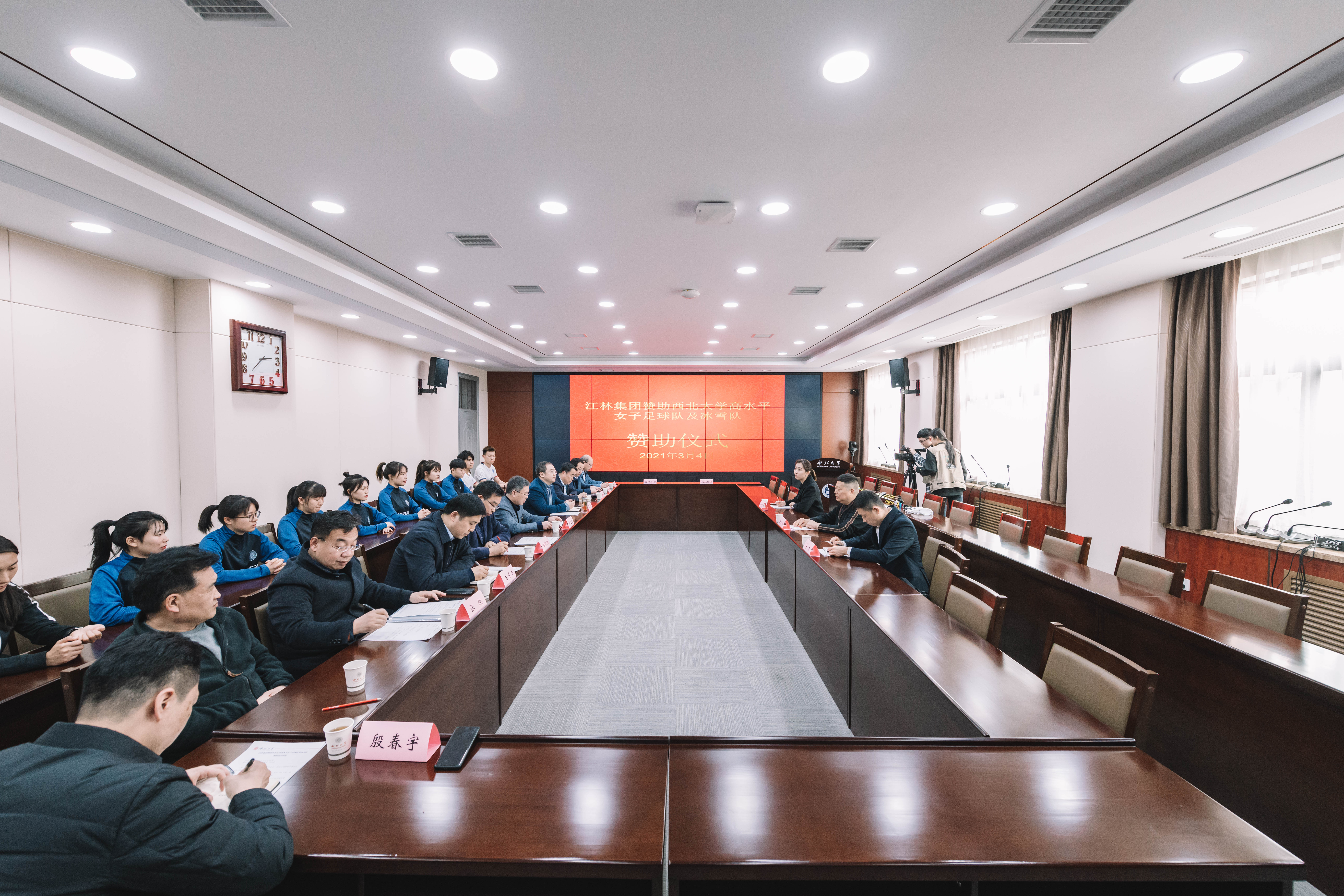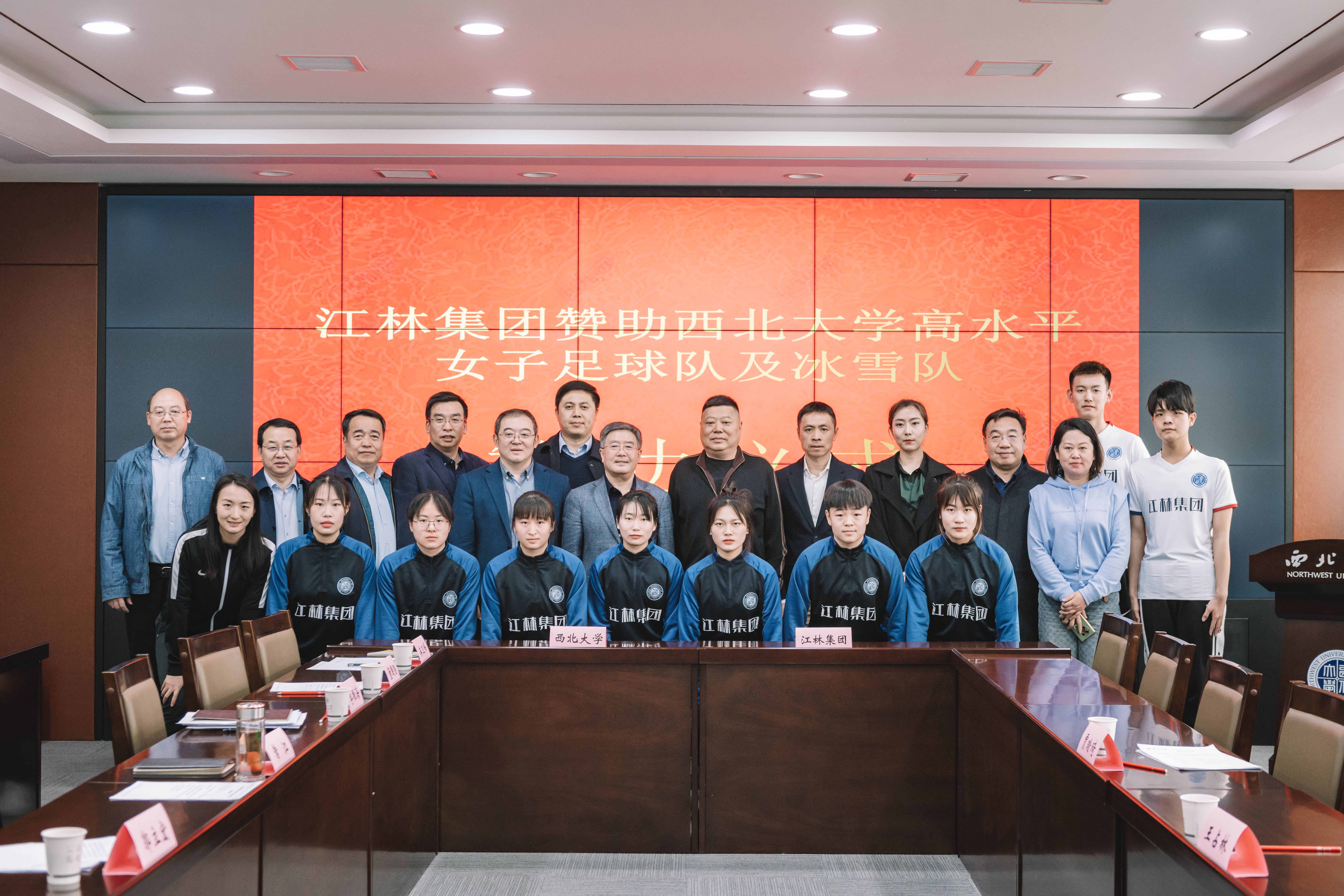 3月4日,江林集团赞助乐鱼web版登录入口高水平女子足球队及冰雪队赞助仪式在乐鱼web版登录入口长安校区举行。江林集团董事长王占林、副总经理宁力,乐鱼web版登录入口校长郭立宏,校党委常委、副校长常江出席仪式,学校相关部门负责人和高水平运动队队员参加仪式。仪式由校党委常委、宣传部部长田明纲主持。