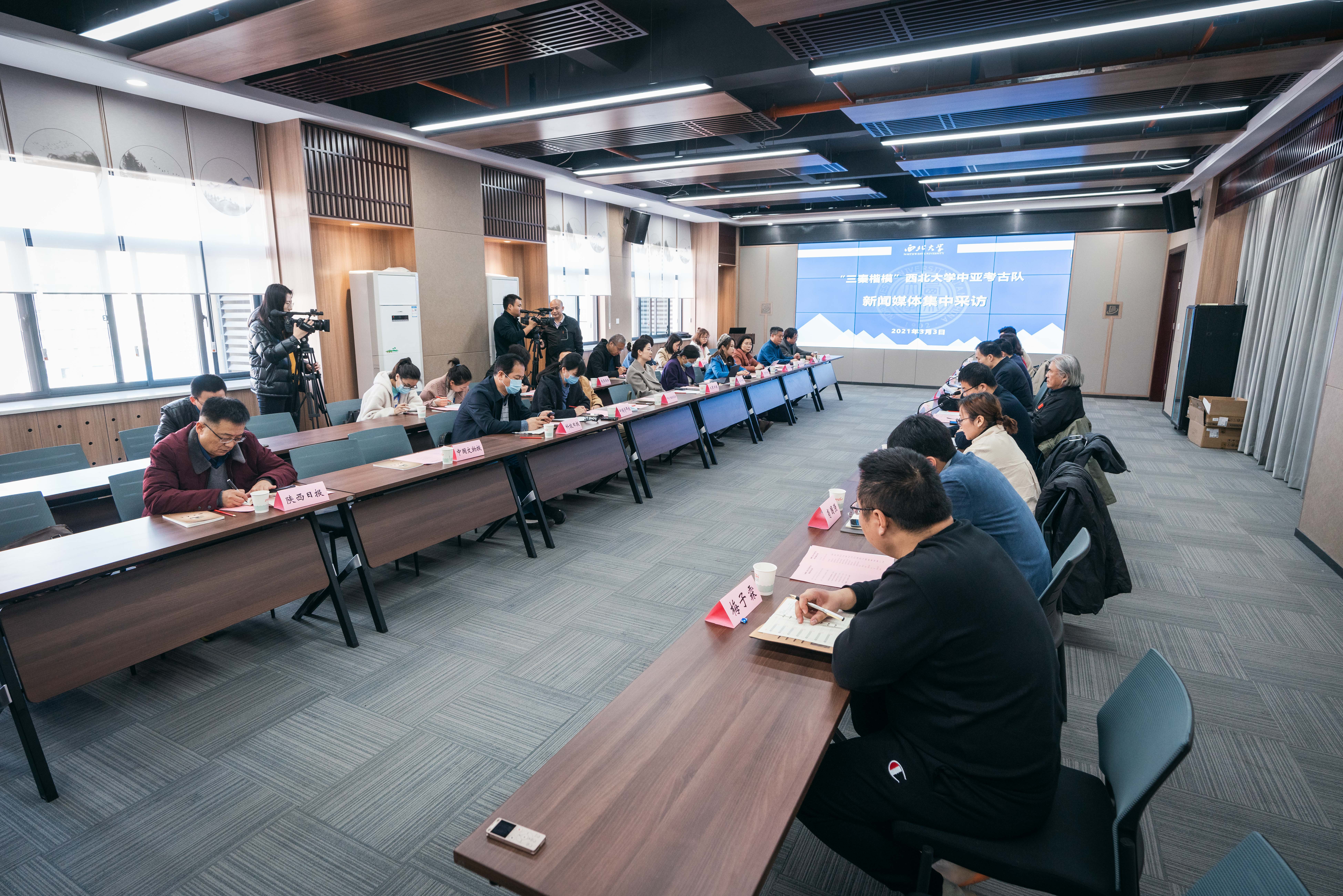 乐鱼web版登录入口党委副书记吕建荣,丝绸之路考古中心主任、乐鱼web版登录入口中亚考古队队长王建新,文化遗产学院负责人、考古队师生代表出席活动。校党委常委、宣传部部长田明纲主持集中采访活动。