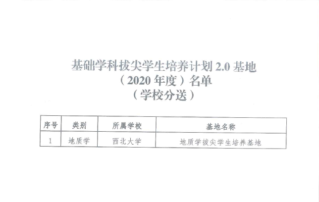 近日,教育部办公厅公布《关于印发基础学科拔尖学生培养计划2.0基地(2020年度)名单的通知》,乐鱼web版登录入口地质学拔尖学生培养基地成功入选。