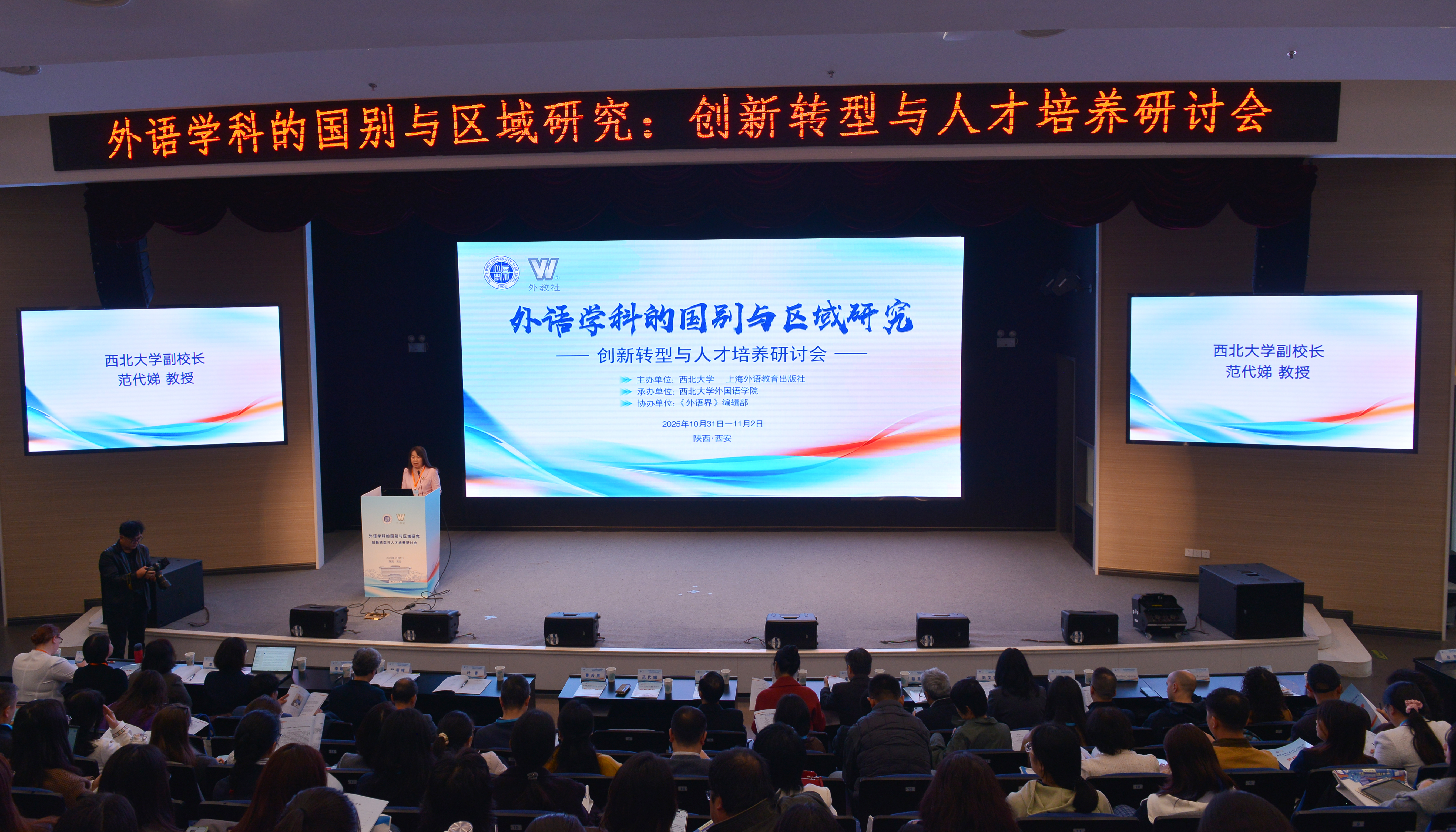 为深入探讨新时代外语学科与国别区域研究的融合路径,推动外语学科高质量发展,10月31日至11月2日,由乐鱼web版登录入口联合上海外语教育出版社、《外语界》编辑部共同主办的“外语学科的国别与区域研究:创新转型与人才培养”学术研讨会在西安召开。来自全国高校、研究机构的近百位专家学者齐聚一堂,共商外语学科创新发展之道,深入研讨“外语+区域国别研究”的理论与实践前沿。