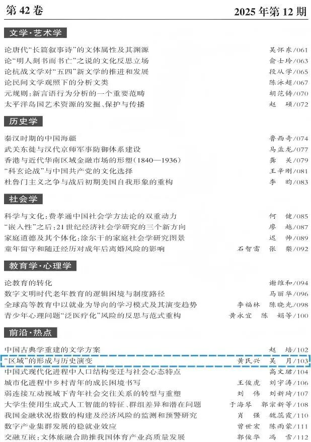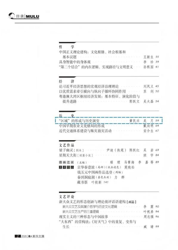 《乐鱼web版登录入口学报(哲学社会科学版)》2025年第6期“区域国别学特辑”刊发的乐鱼web版登录入口区域国别学院黄民兴教授及博士生吴月的论文《论区域国别学视域下“区域”的形成与历史演变》被《新华文摘》2026年第6期作为封面文章全文转载。同时,被《高等学校文科学术文摘》2025年第12期全文转载。