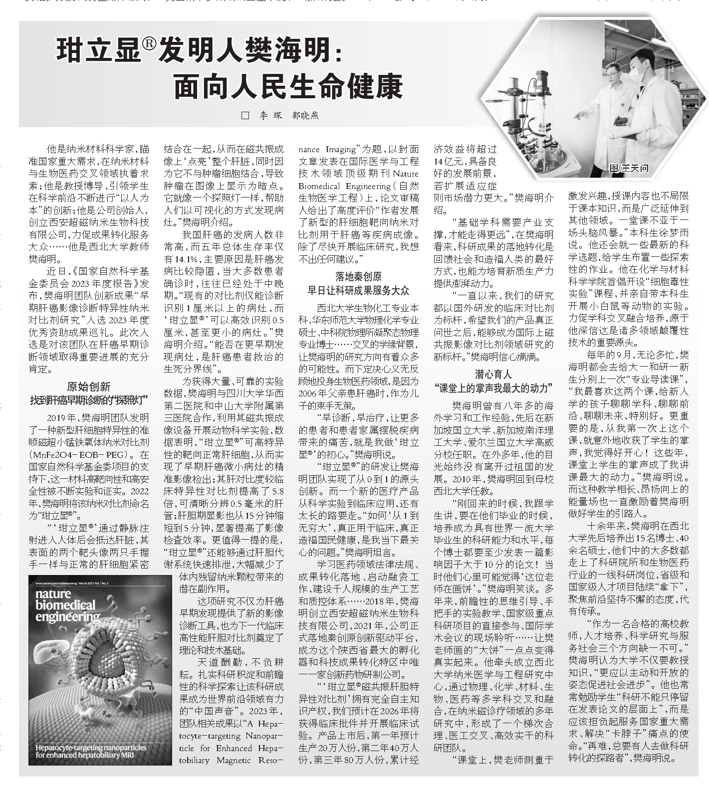 他是纳米材料科学家,瞄准国家重大需求,在纳米材料与生物医药交叉领域执着求索;他是教授博导,引领学生在科学前沿不断进行“以人为本”的创新;他是公司创始人,创立西安超磁纳米生物科技有限公司,力促成果转化服务大众……他是乐鱼web版登录入口教师樊海明。
