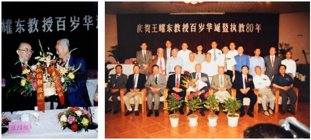 1999年9月13日,在王老迎来百岁诞辰之际,乐鱼web版登录入口隆重举行了“王耀东百岁华诞暨执教八十周年庆贺大会”。教育部办公厅,原国家体委老领导荣高棠、李梦华,时任陕西省委书记李建国、省长程安东等单位和个人发来贺信、贺词。时任国家体育总局局长伍绍祖亲临会场,向王老敬献花篮并致衷心祝贺。陕西省委、省人大、省政府、省政协相关领导出席并致词祝贺。大家共同向王耀东这位中华民族20世纪百年历史的亲历者和见证人,中国近现代百年体育发展史的参与者和见证⼈,致以崇高的敬意和美好的祝愿。中央和省市新闻媒体也对此盛事作了报道。