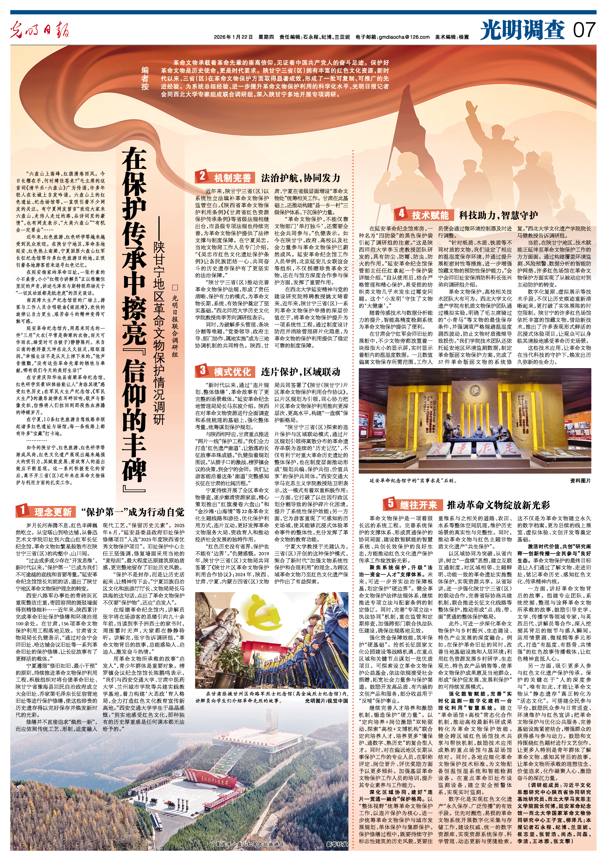宁夏大学教授于光建认为,三省(区)开创的这种保护模式,契合了新时代“加强文物系统性保护和合理利用”的理念,为跨区域革命文物乃至红色文化遗产保护作出了有益探索。