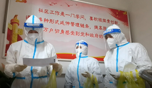 “作为一名党员,在疫情严重的情况下,我们就应该挺身而出,有义务为大家做好服务工作,让大家安心。”负责在楼宇之间通知居民下楼做核酸的文学院党员张婧,将家里的两个小孩托付给老人照顾,拿着大喇叭手脚冻得僵硬,不断在各个楼层之间穿梭。