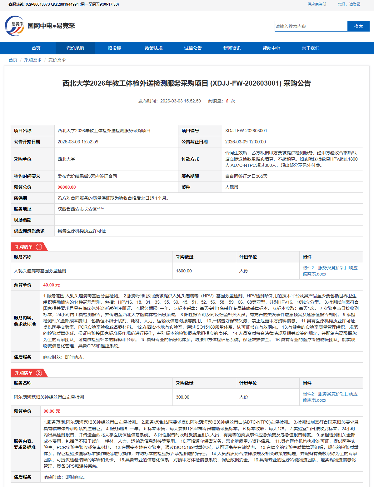 乐鱼web版登录入口2026年教工体检外送检测服务采购项目(XDJJ-FW-202603001)竞价采购公告