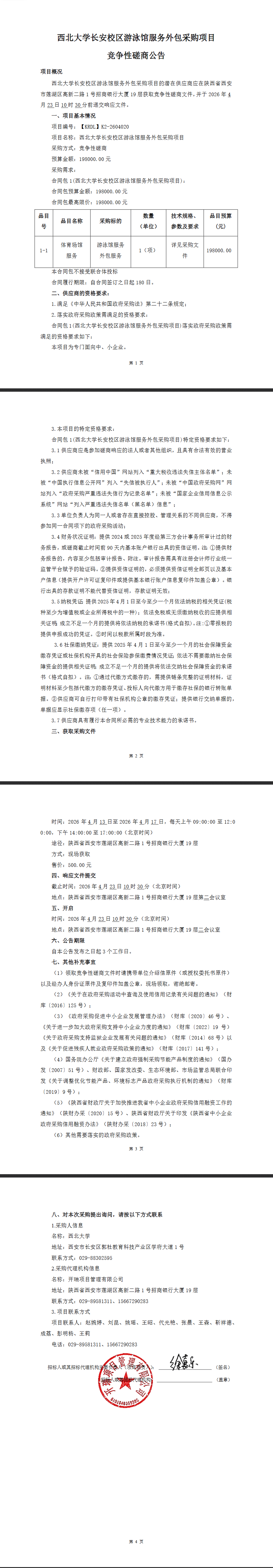 乐鱼web版登录入口长安校区游泳馆服务外包采购项目竞争性磋商公告
